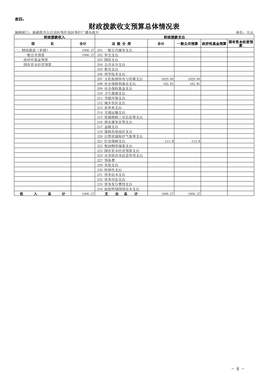45.新疆维吾尔自治区喀什地区喀什广播电视台2021年预算报告