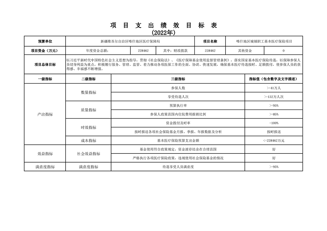 喀什地区及本级2022年社会保险基金预算项目支出绩效目标表