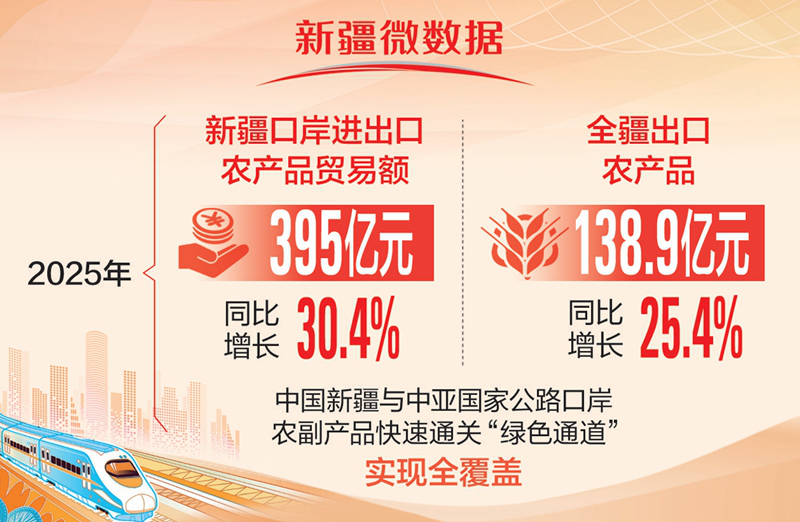 2025年,乌鲁木齐海关相继出台《乌鲁木齐海关进一步优化口岸营商环境 推动新疆高水平开发开放二十项举措》《乌鲁木齐海关支持农食产品出口三年专项行动十二项举措》以及实施“帮扶南疆地区农食产品出口”专项行动等务实举措,助力新疆优质特色产品“走出去”。