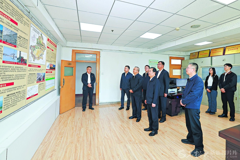 4月7日,自治区党委书记陈小江、自治区主席艾尔肯·吐尼亚孜赴自治区自然资源厅、自治区地质局调研并座谈。这是陈小江、艾尔肯·吐尼亚孜在自治区自然资源厅,了解地质勘查等重点工作进展。□石榴云/新疆日报记者 崔志坚摄