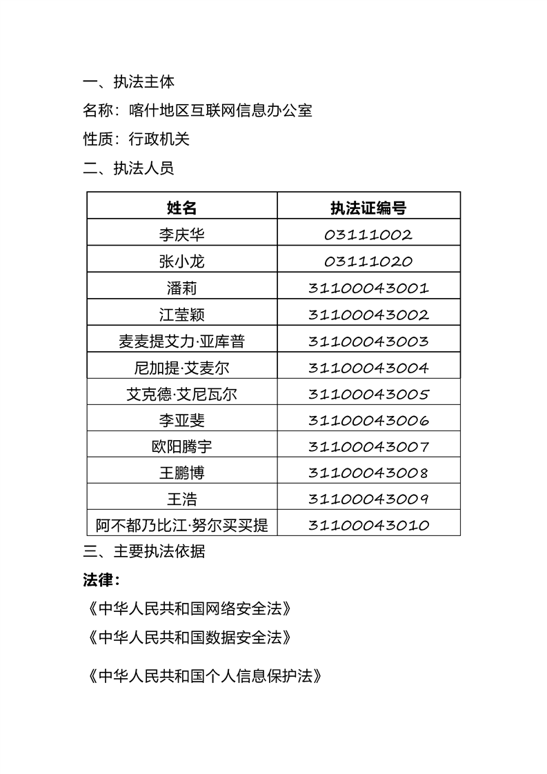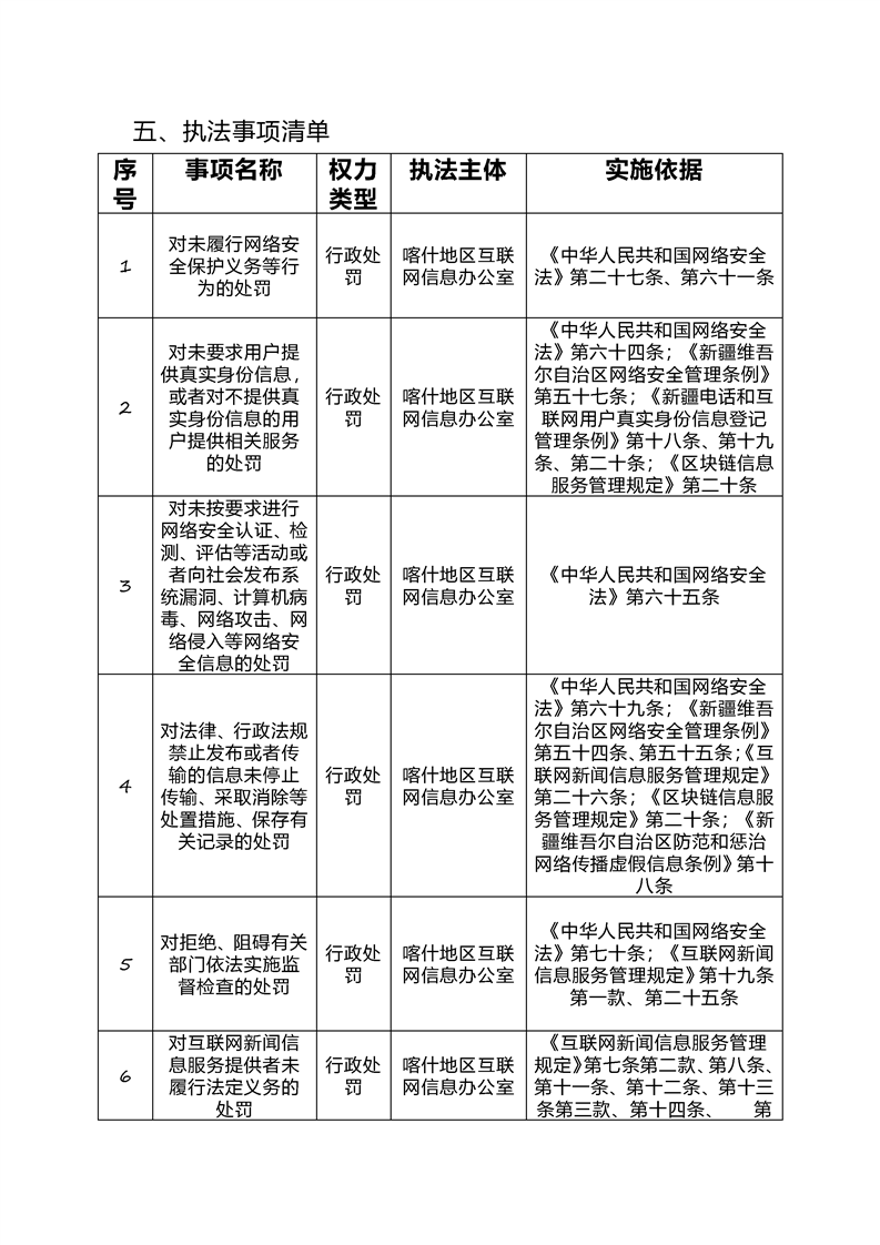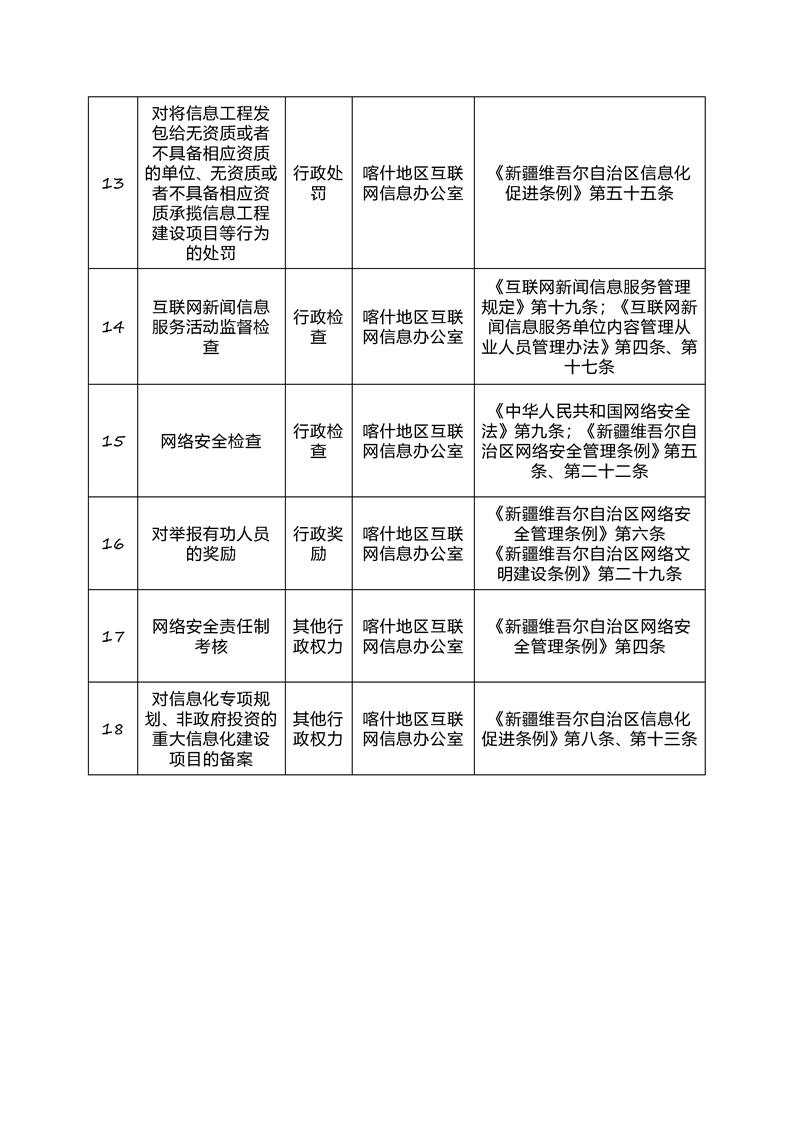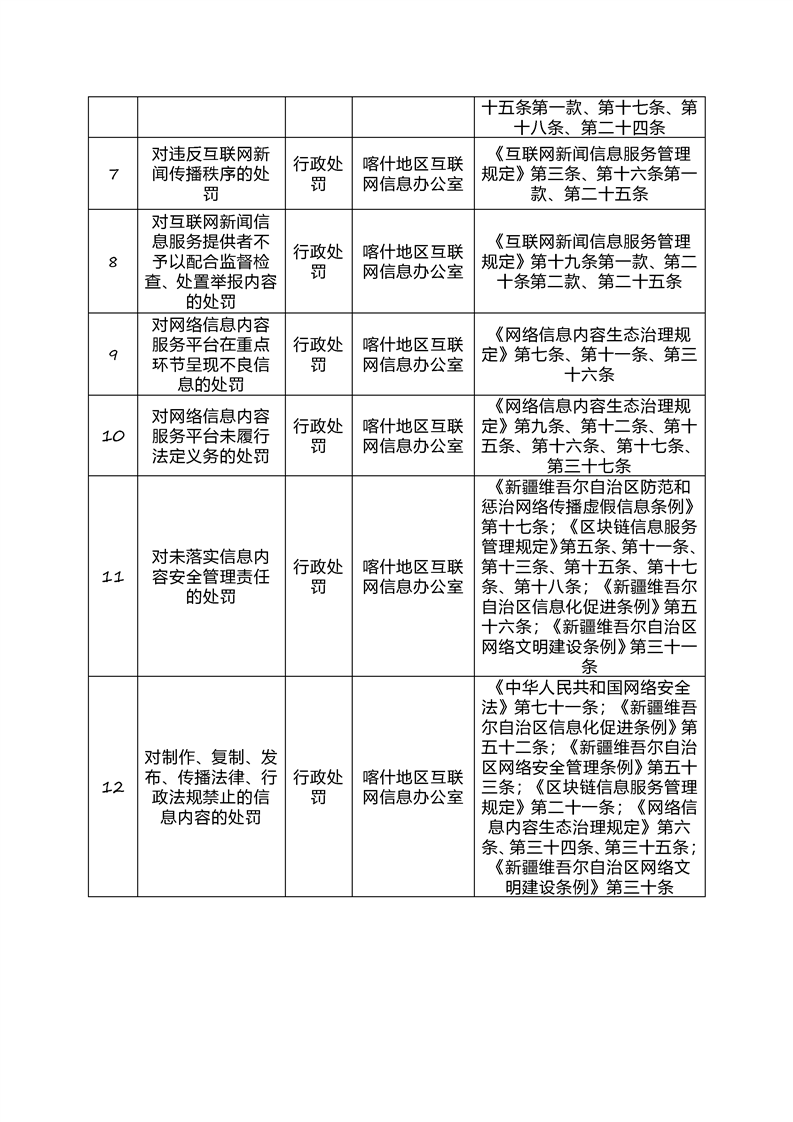 喀什地区互联网信息办公室网络执法事前公示