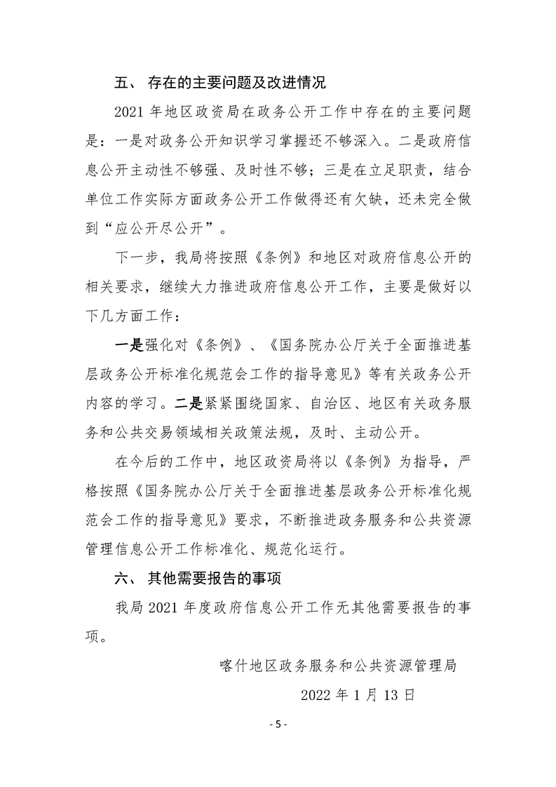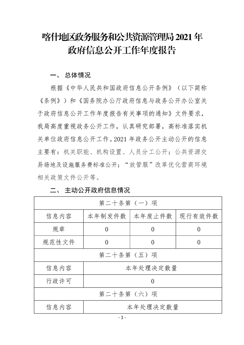 喀什地区政务服务和公共资源管理局2021年政府信息公开工作年度报告