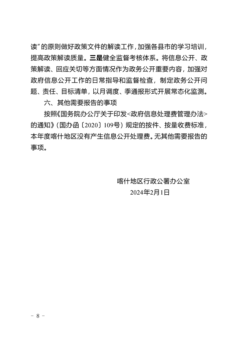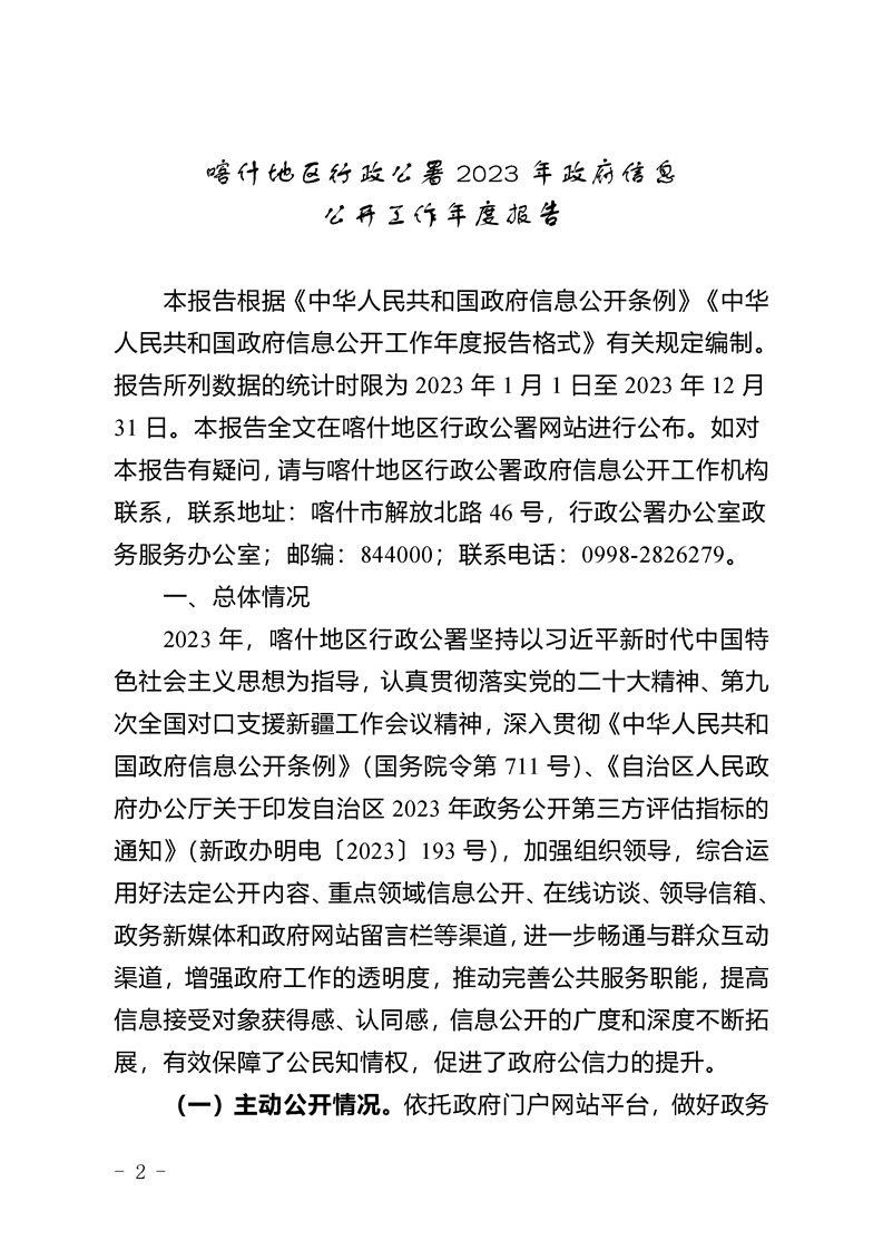 喀什地区行政公署2023年政府信息公开工作年度报告