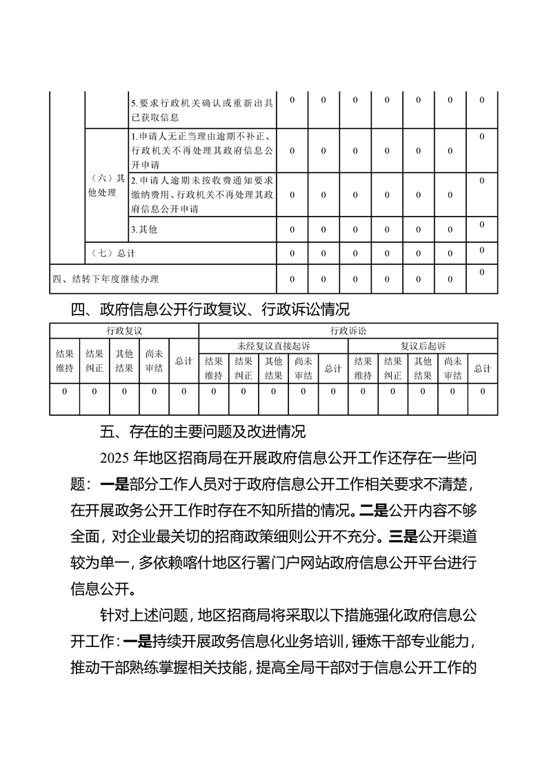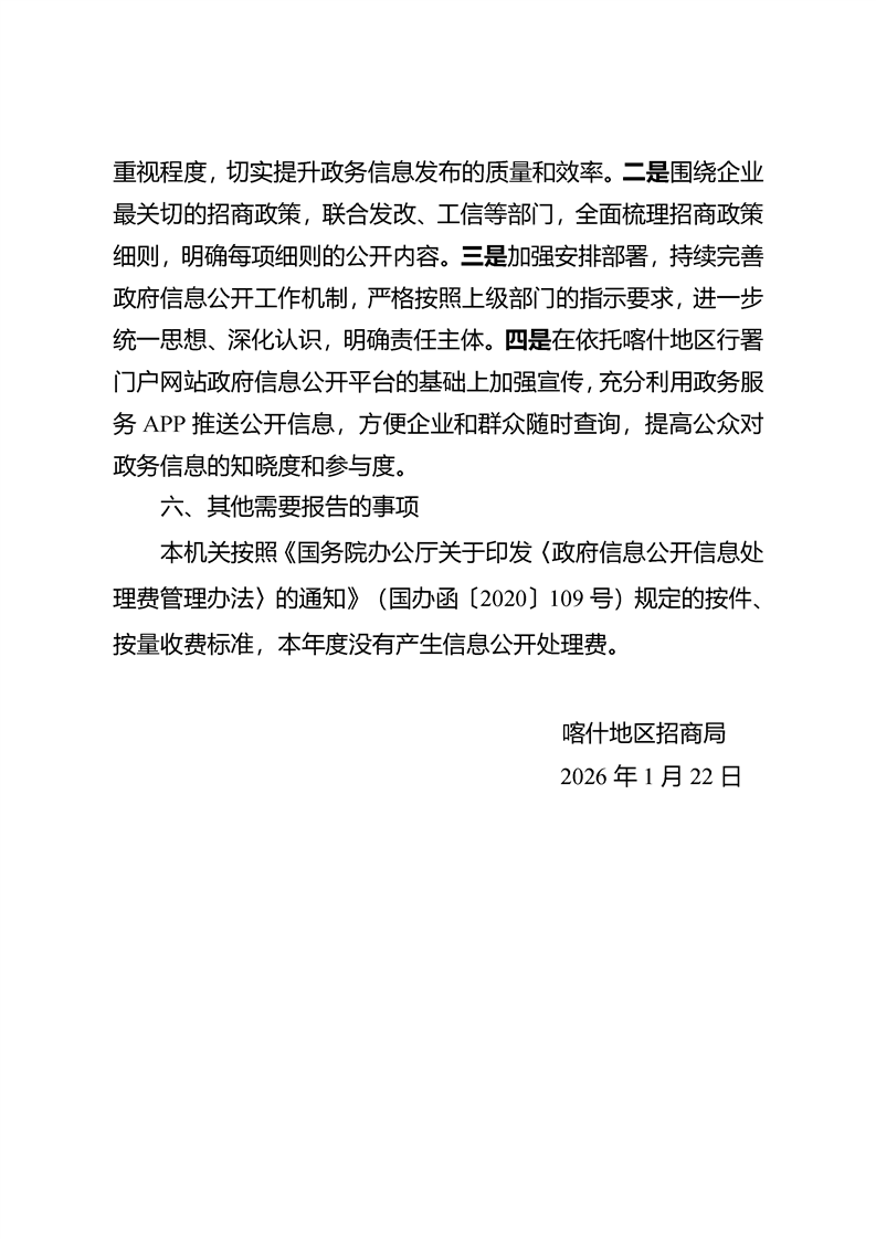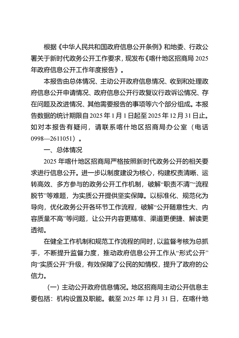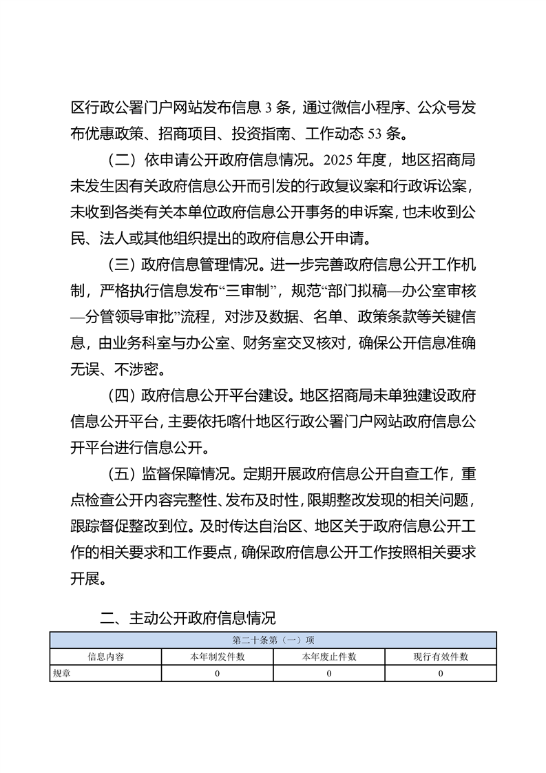喀什地区招商局2025年度政府信息公开工作年度报告