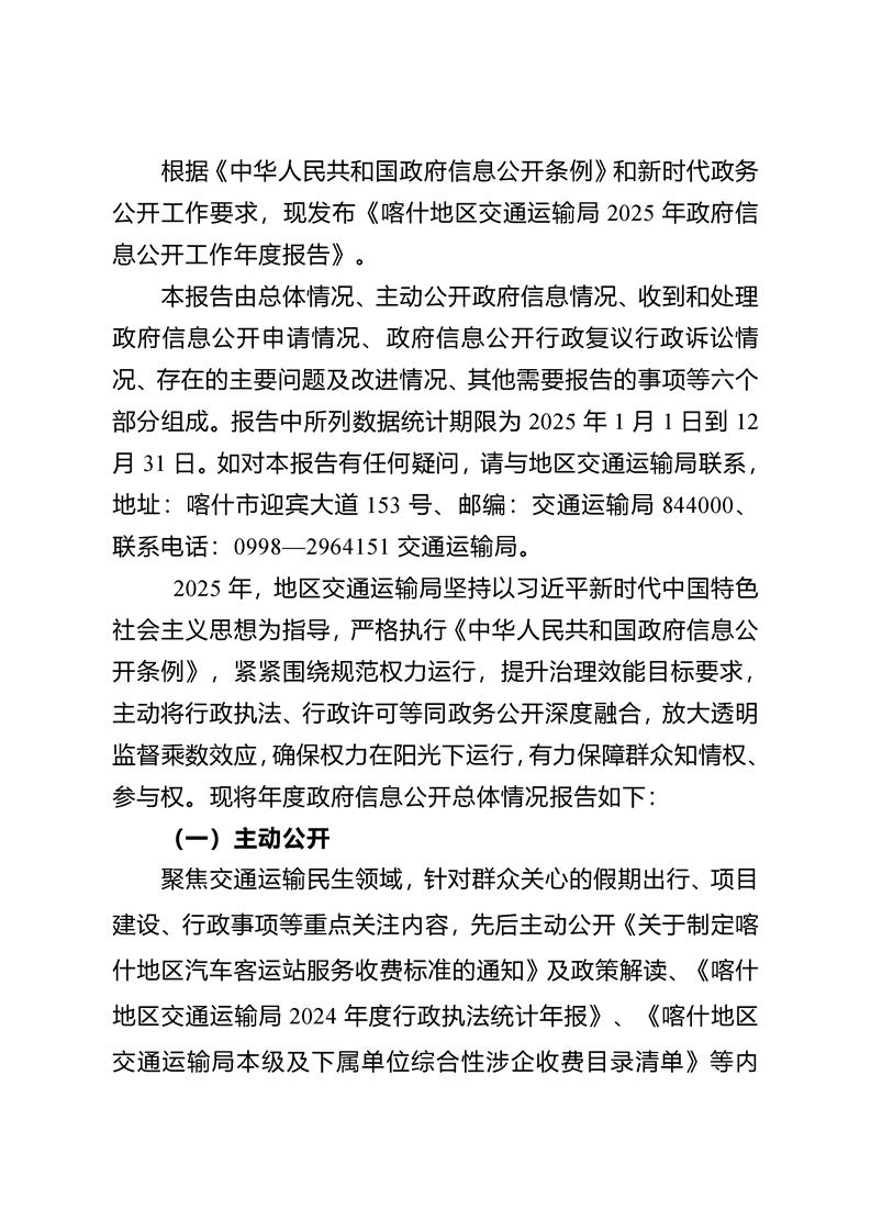 喀什地区交通运输局2025年政府信息公开工作年度报告