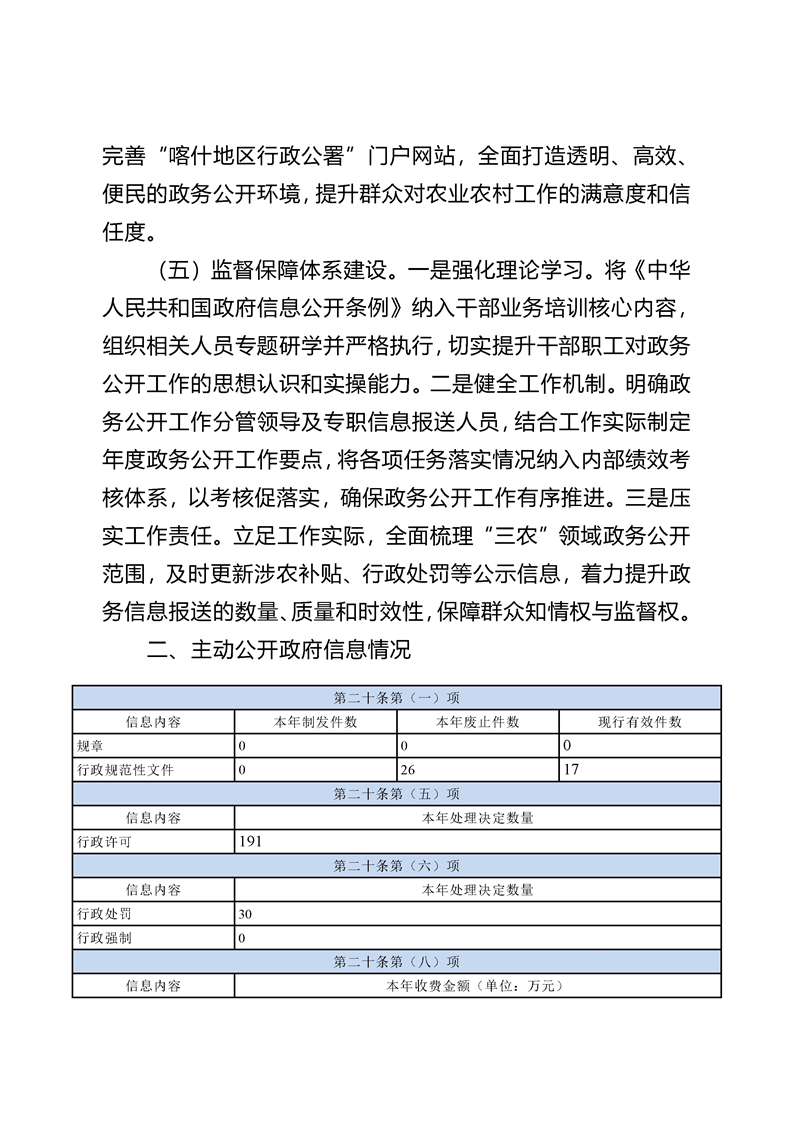 喀什地区农业农村局2025年政府信息公开工作年度报告
