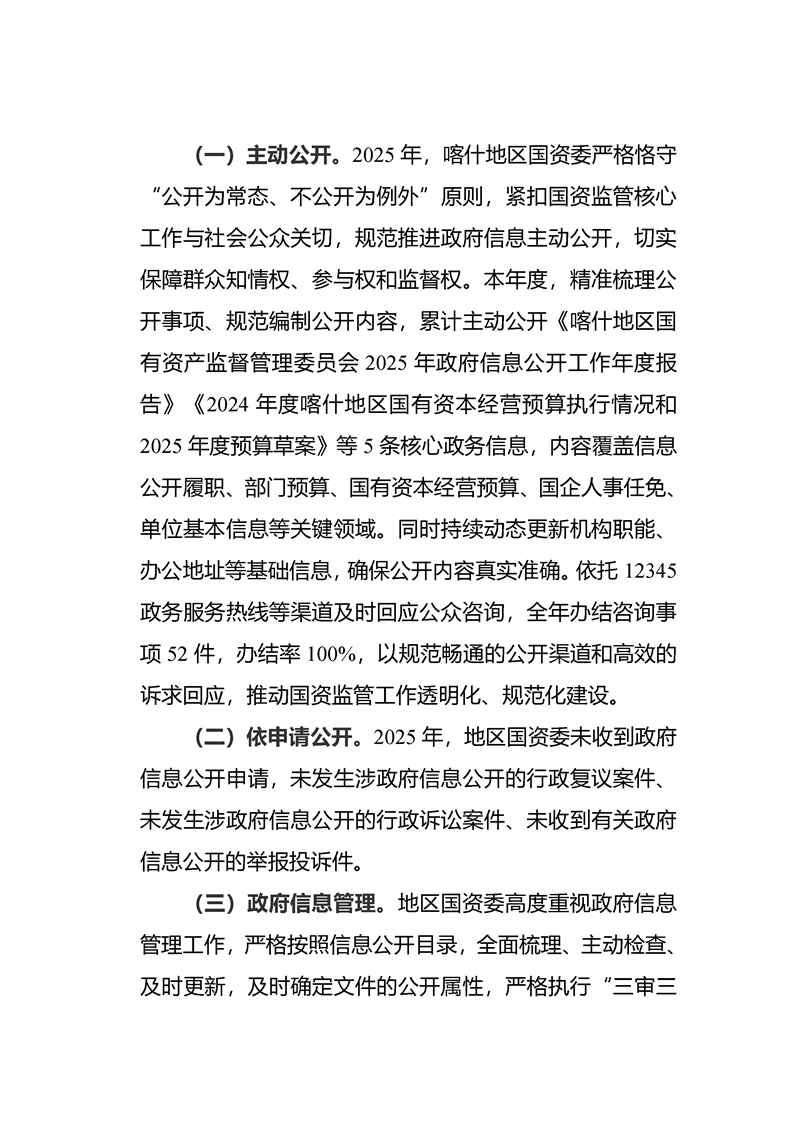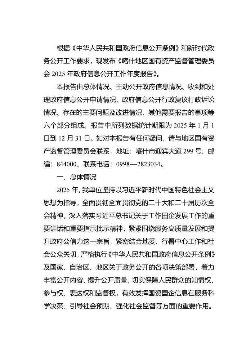 喀什地区国有资产监督管理委员会2025年政府信息公开工作年度报告
