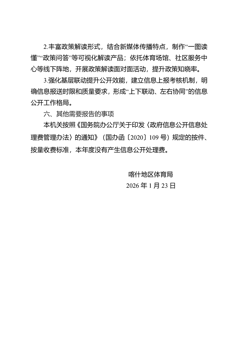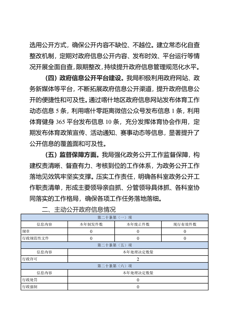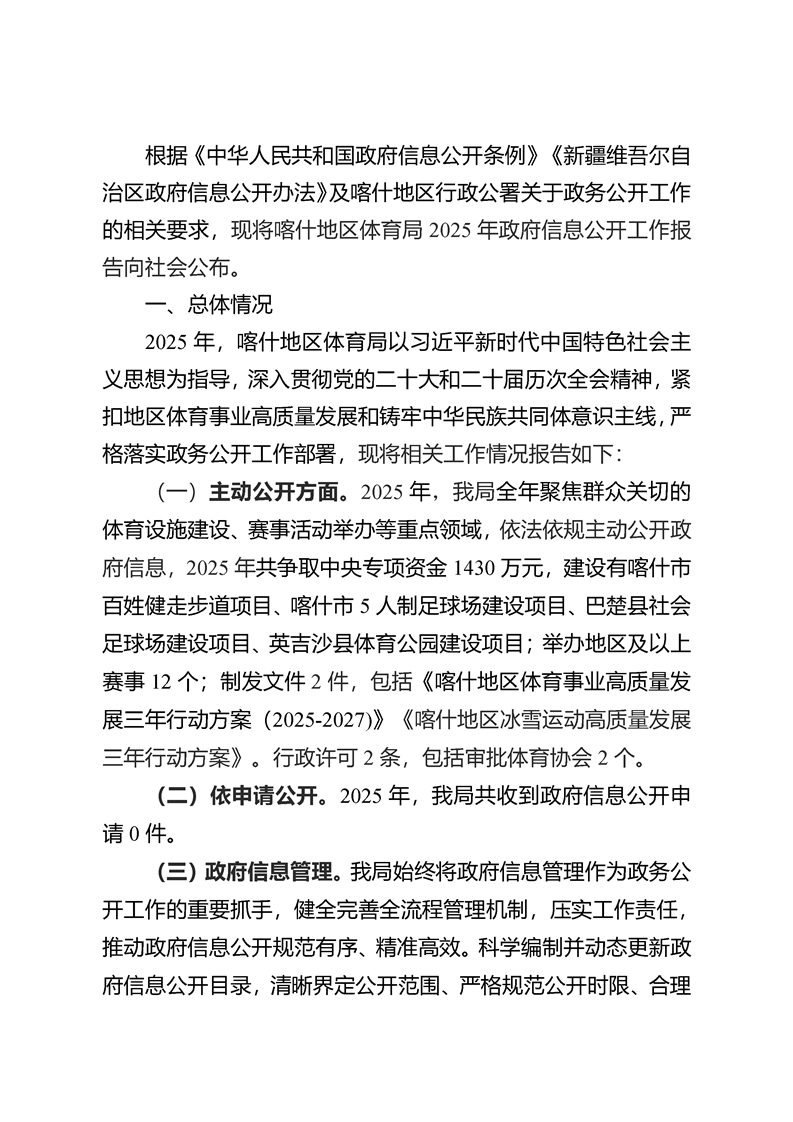 喀什地区体育局2025年政府信息公开工作年度报告