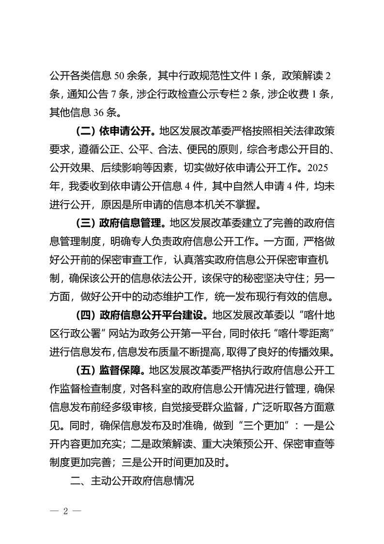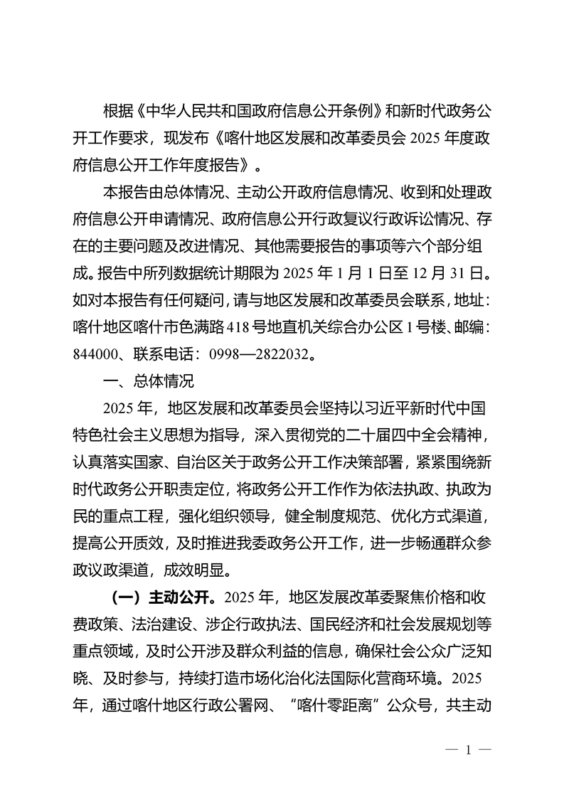 喀什地区发展和改革委员会2025年度政府信息公开工作年度报告