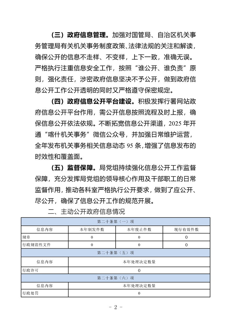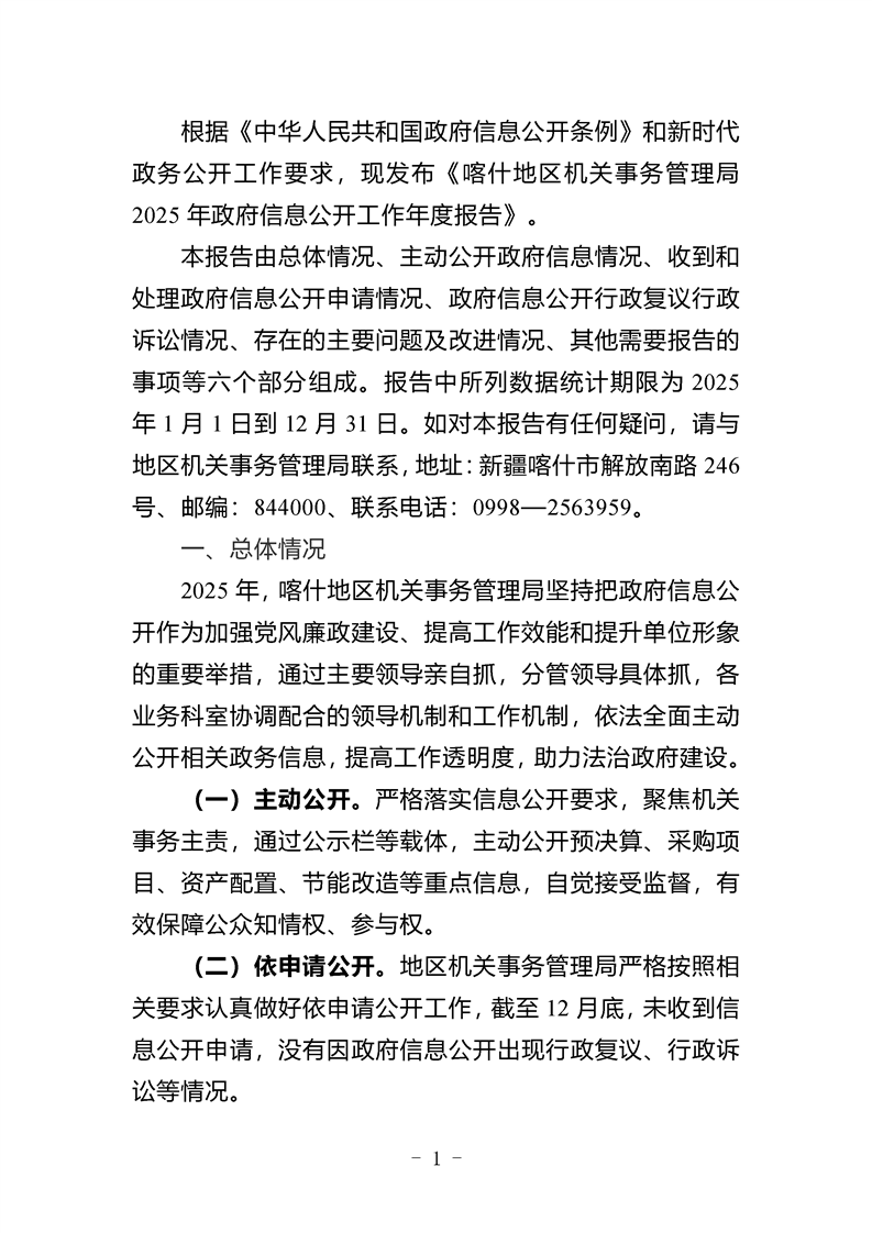 喀什地区机关事务管理局2025年政府信息公开工作年度报告
