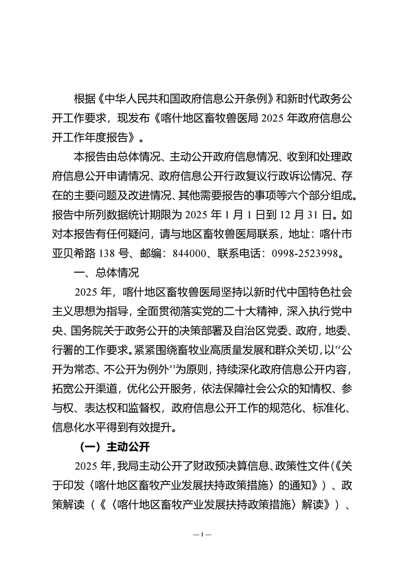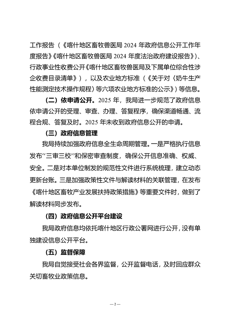 喀什地区畜牧兽医局2025年政府信息公开工作年度报告