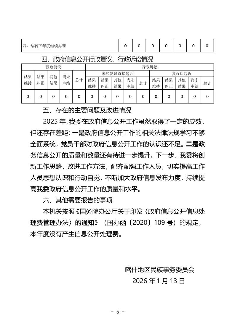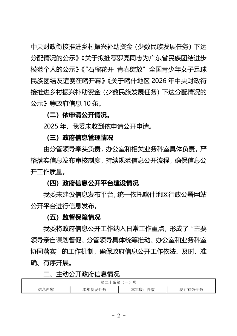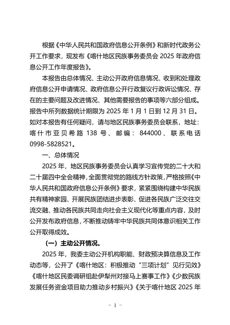 喀什地区民族事务委员会2025年政府信息公开工作年度报告