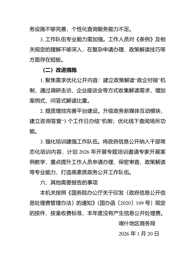 喀什地区商务局2025年度政府信息公开工作年度报告