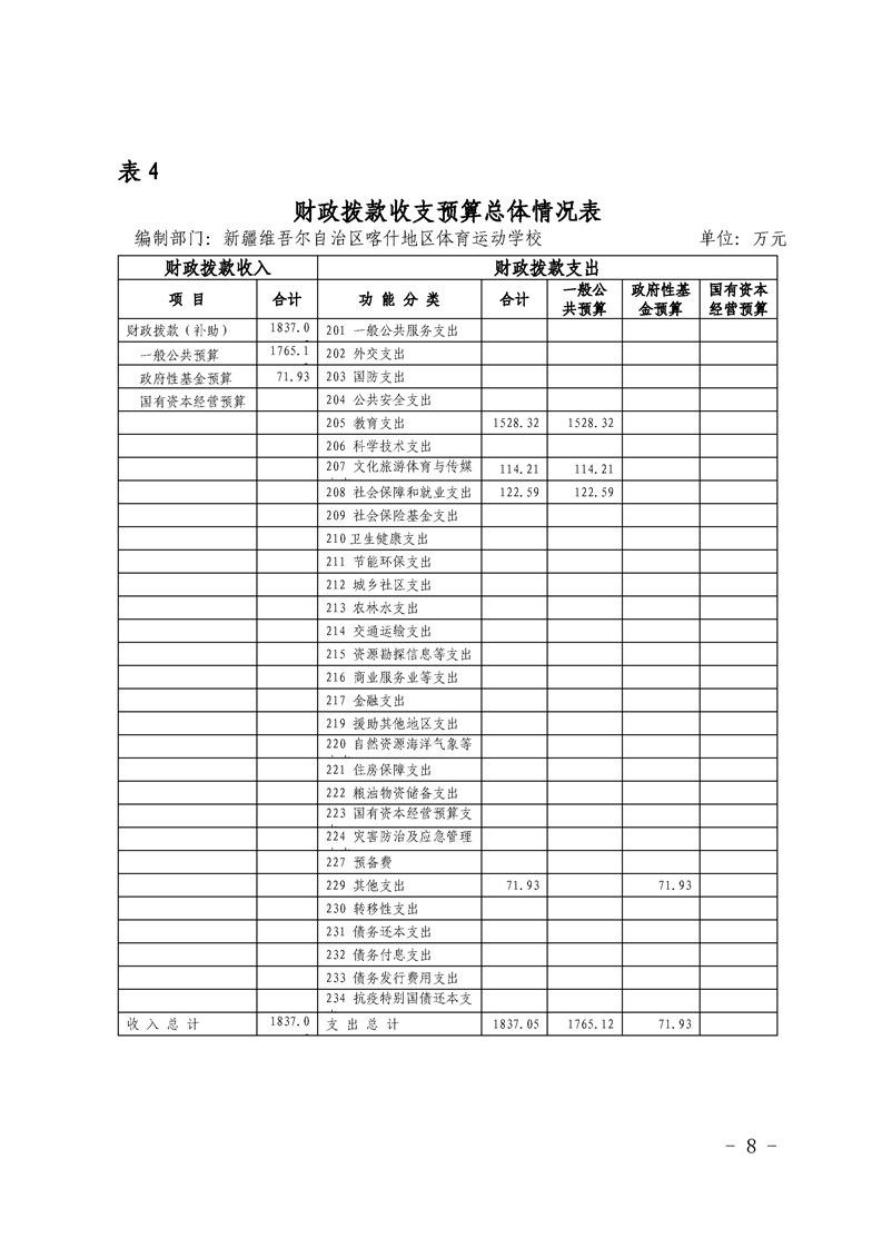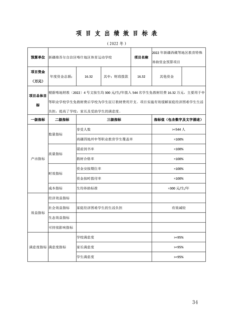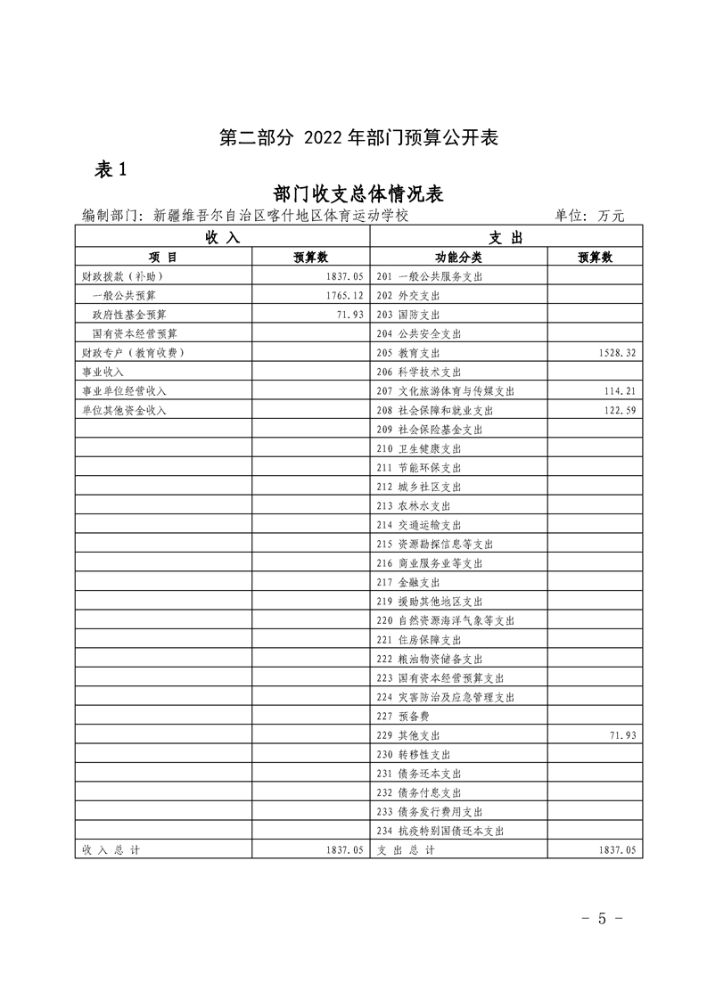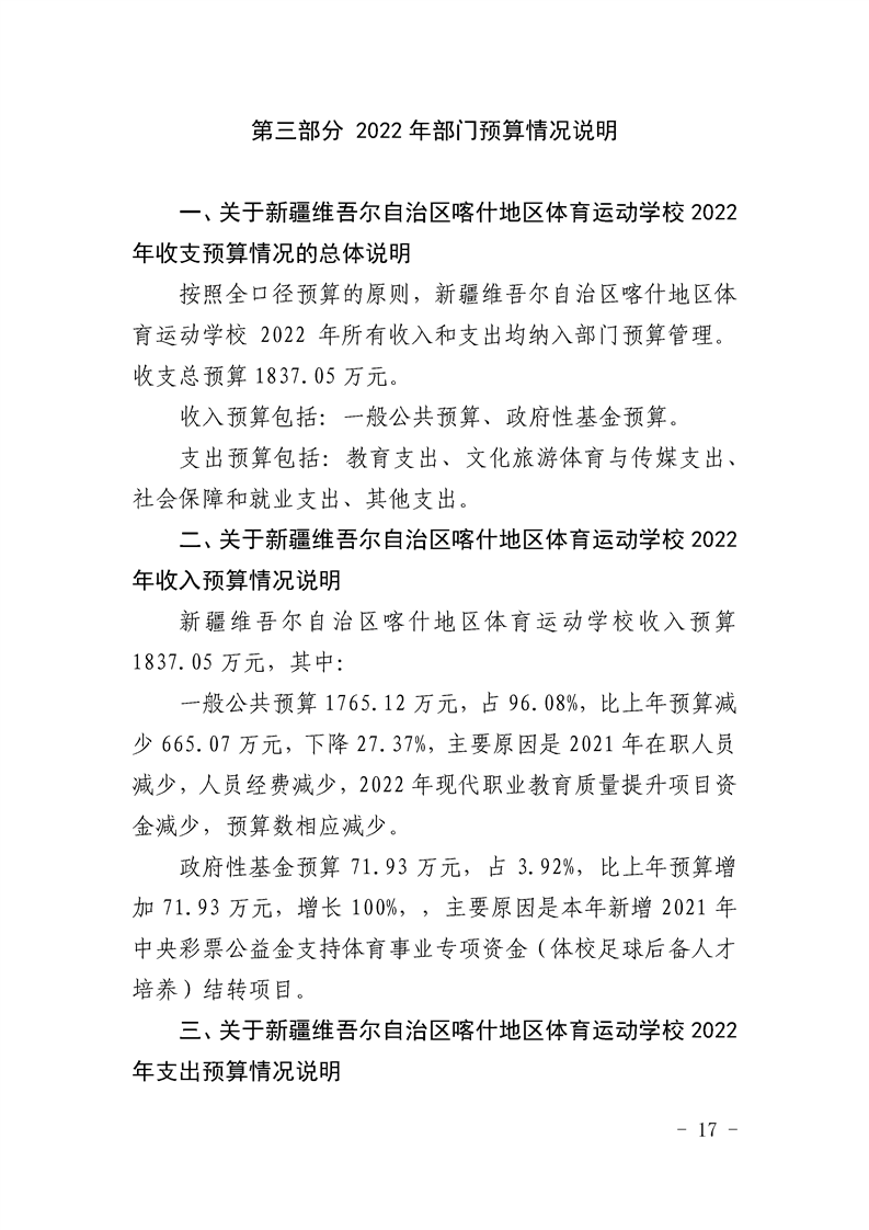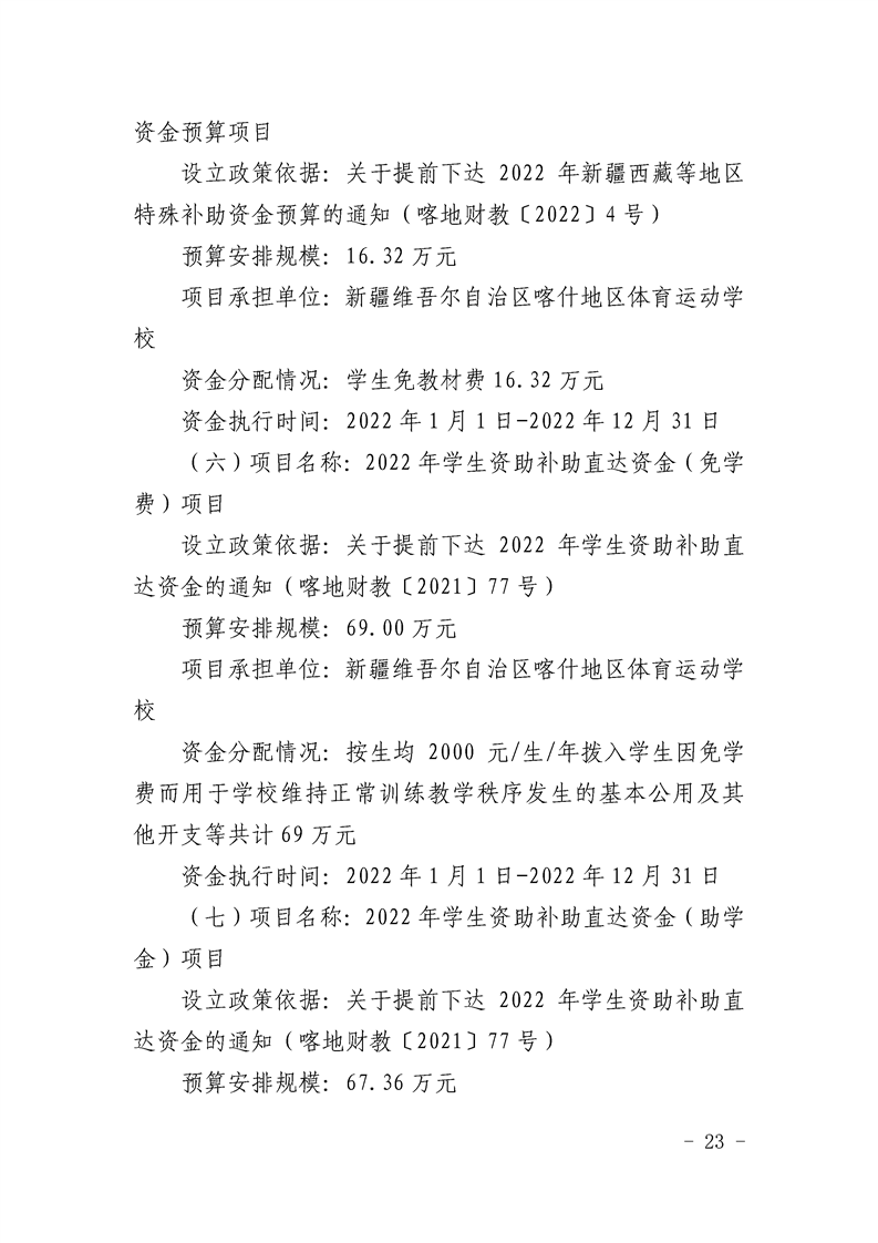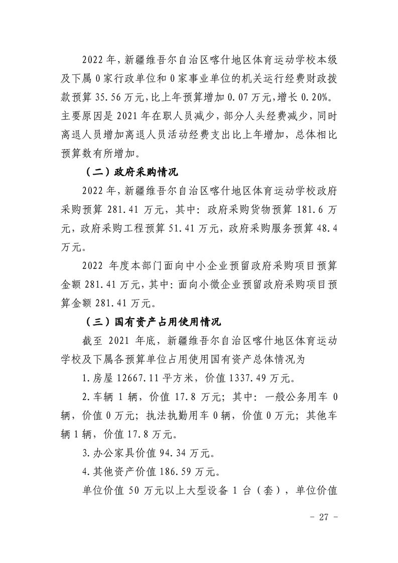 38.2022年度新疆维吾尔自治区喀什地区体育运动学校预算公开