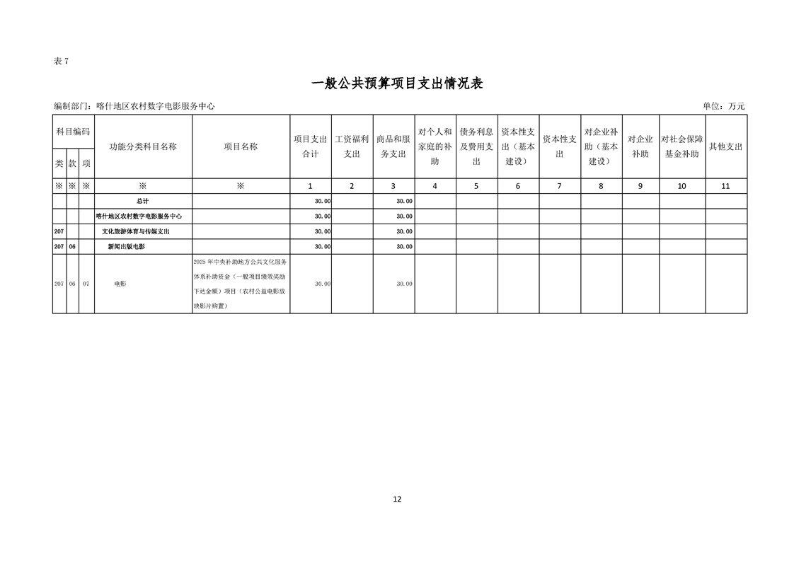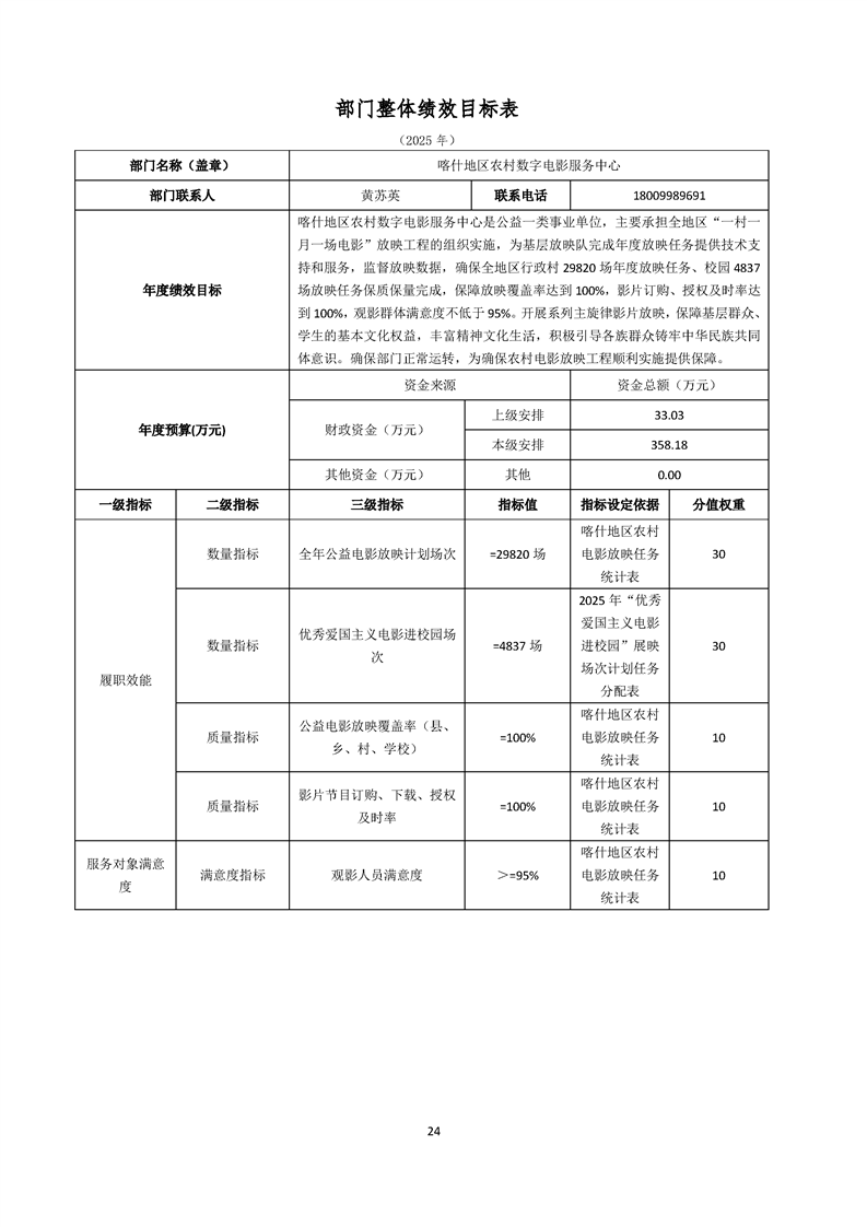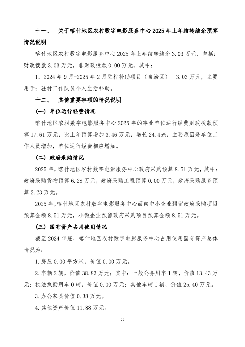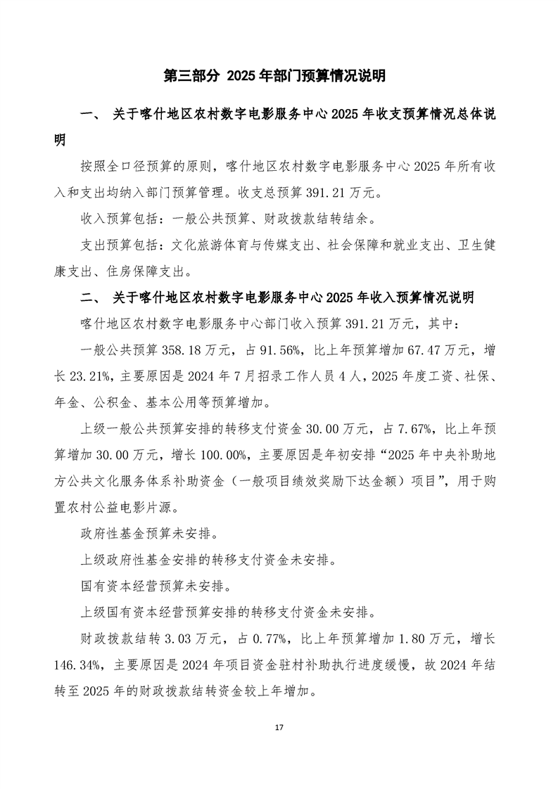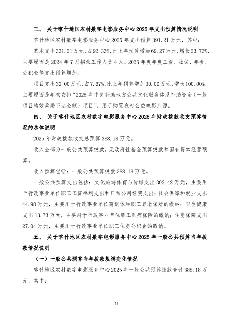 81.喀什地区农村数字电影服务中心2025年部门预算公开报告