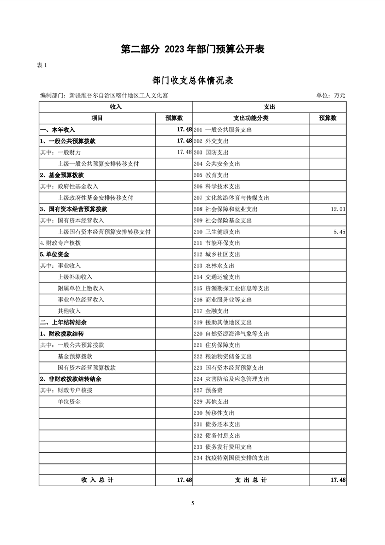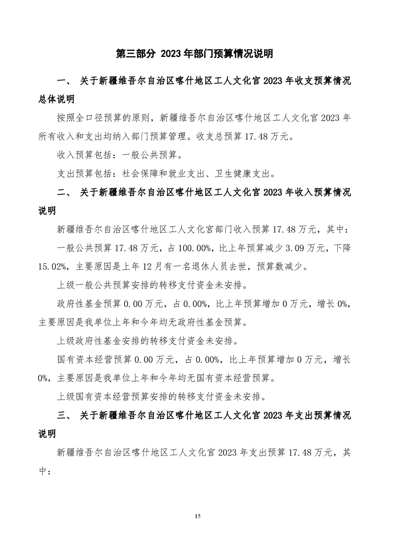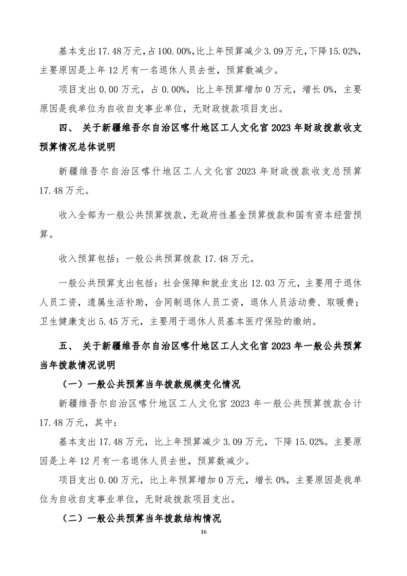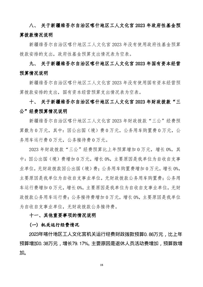 123.新疆维吾尔自治区喀什地区工人文化宫2023年部门预算公开报告
