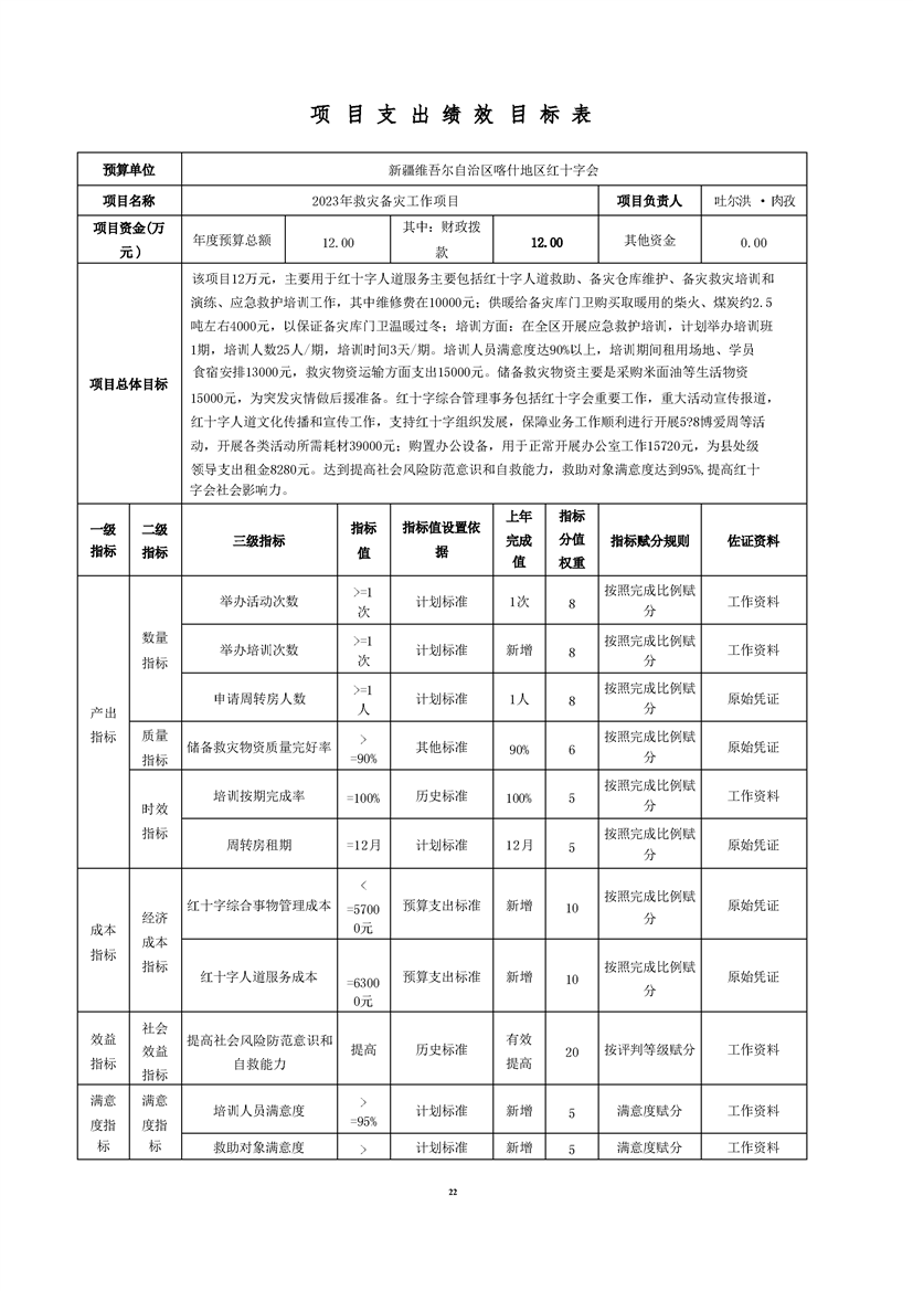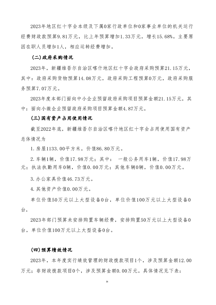 117.新疆维吾尔自治区喀什地区红十字会2023年部门预算公开报告