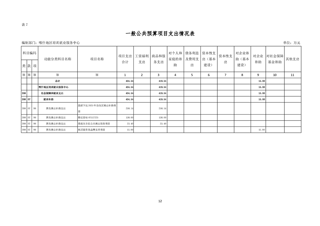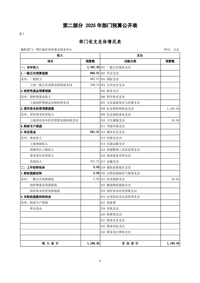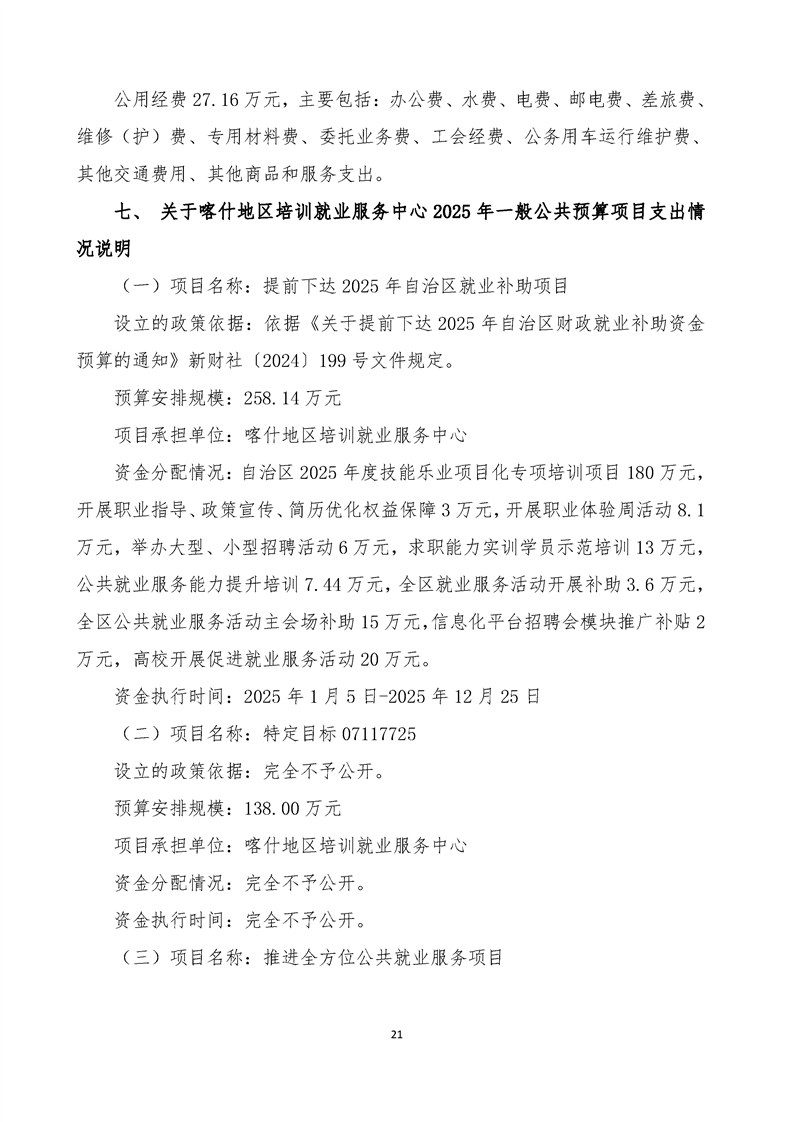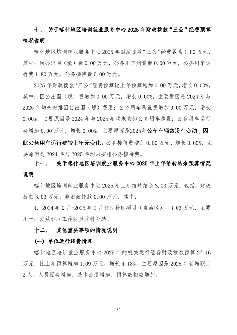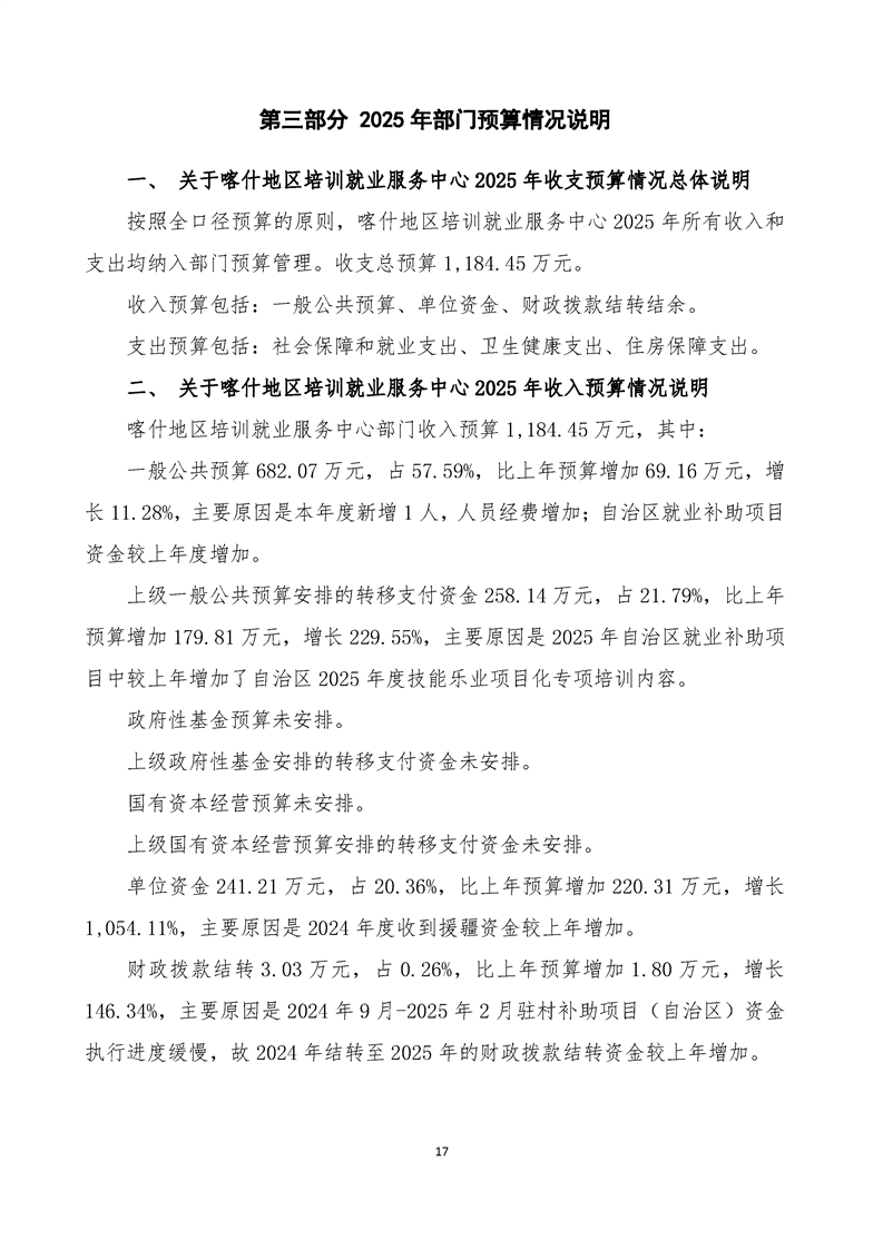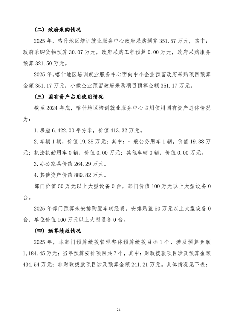 113.喀什地区培训就业服务中心2025年部门预算公开报告