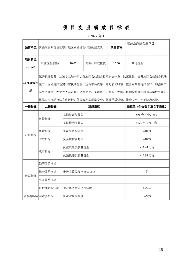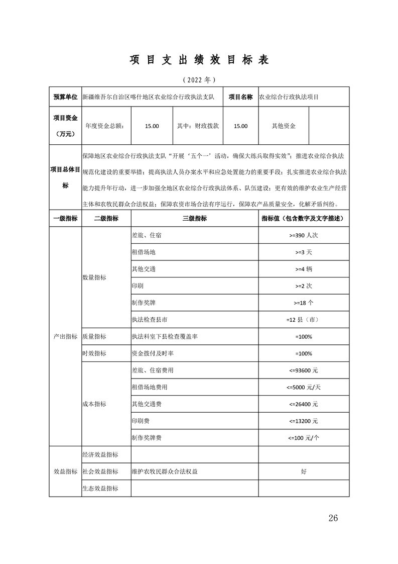 115.2022年度新疆维吾尔自治区喀什地区农业综合行政执法支队部门预算公开