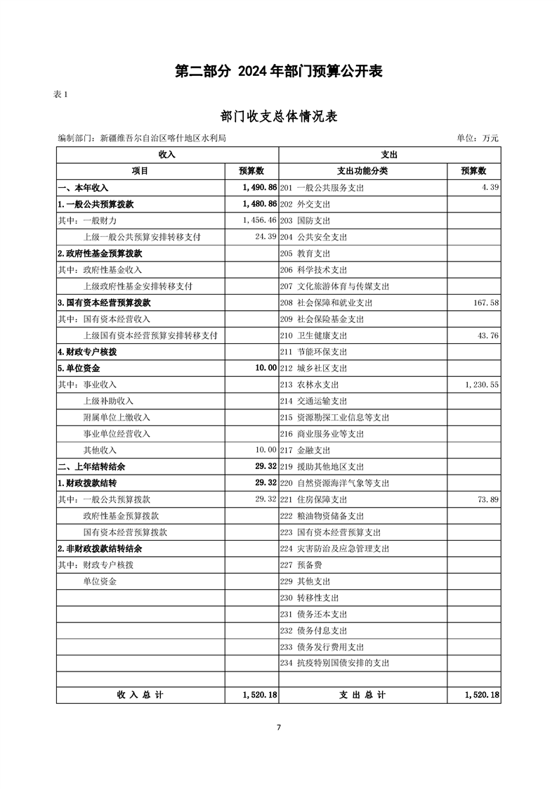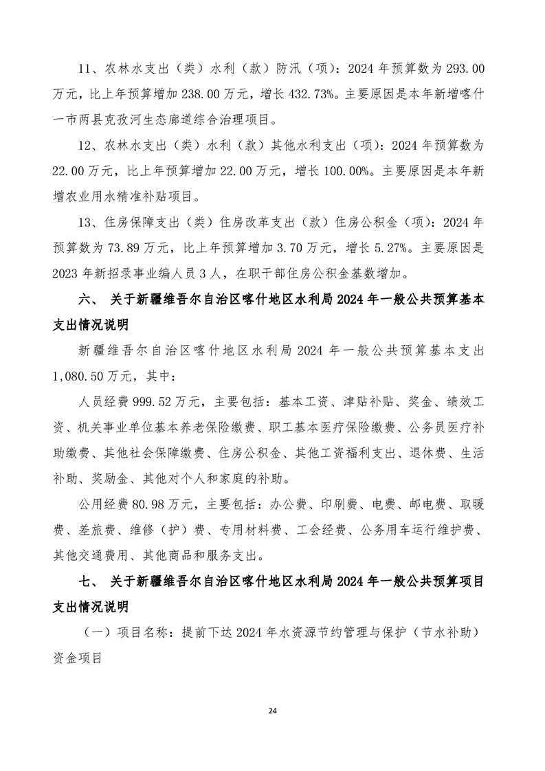 145.新疆维吾尔自治区喀什地区水利局2024年部门预算公开报告