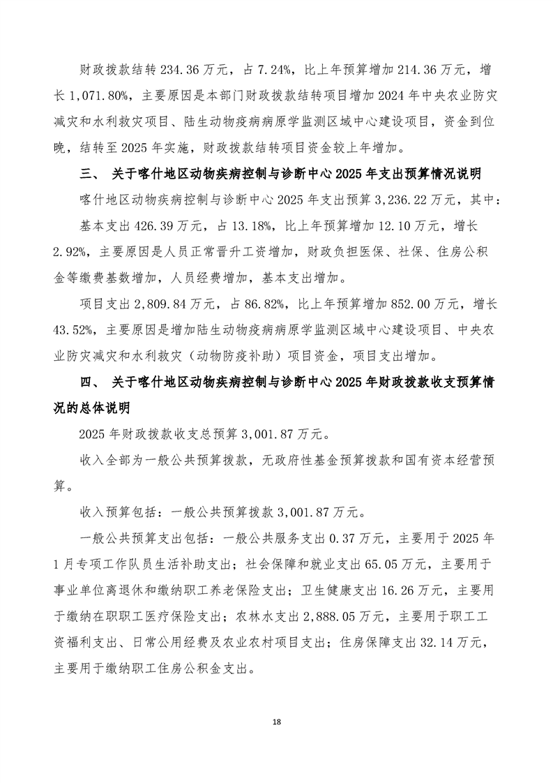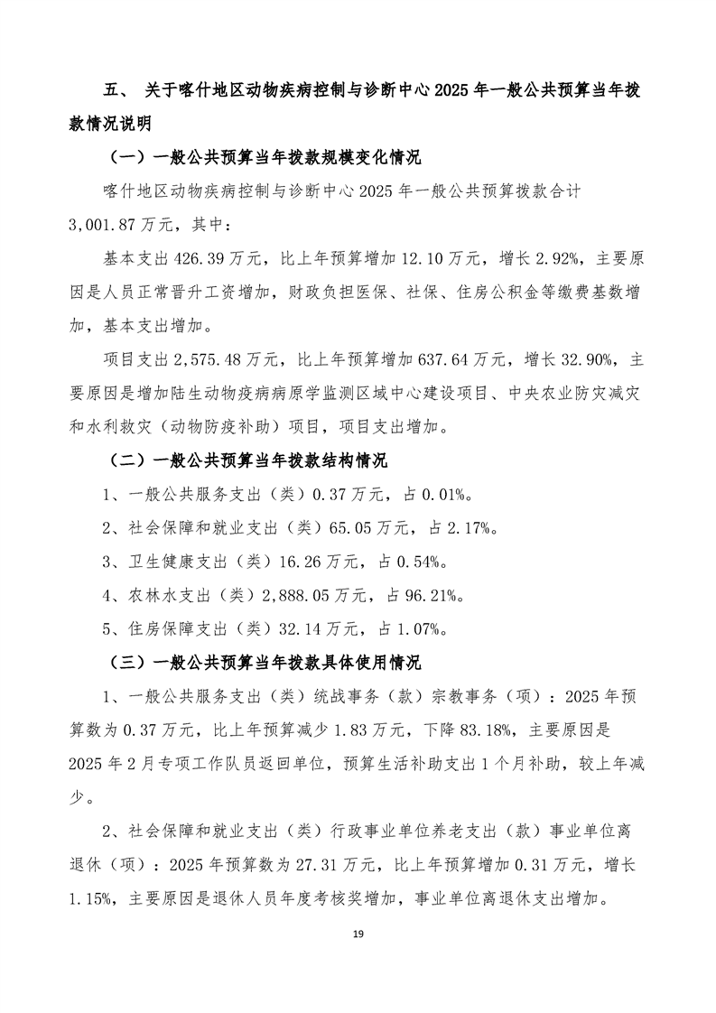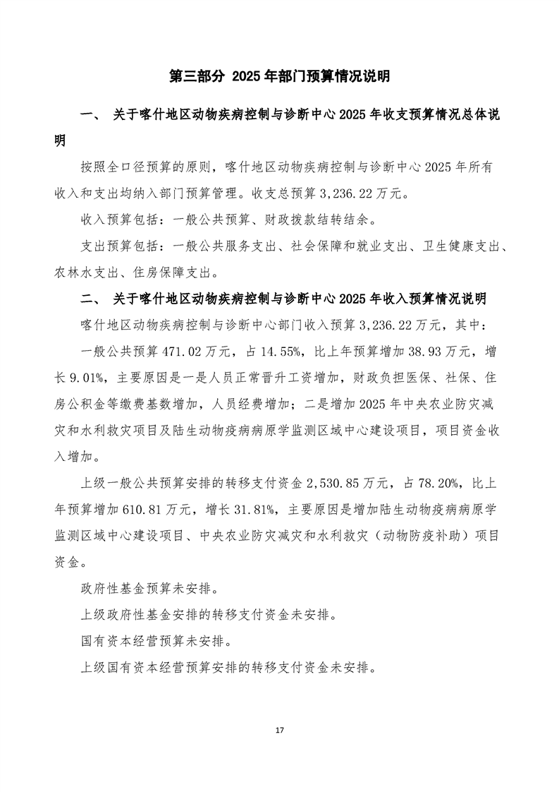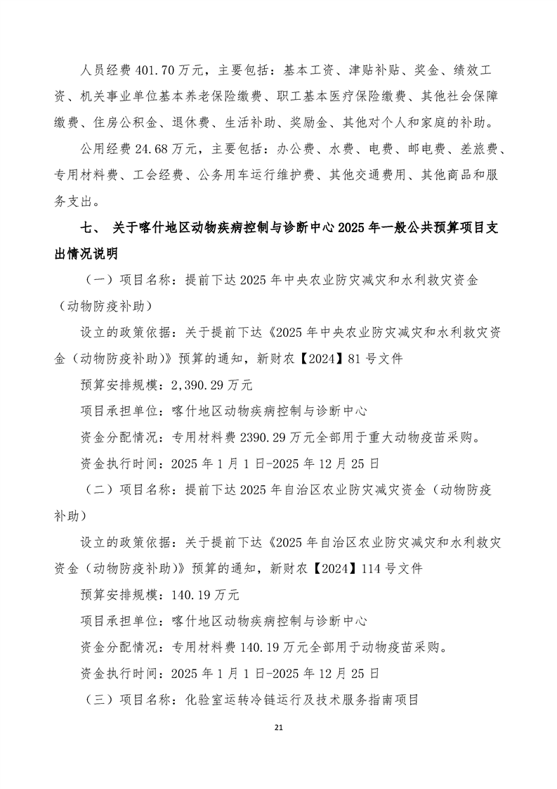 154.喀什地区动物疾病控制与诊断中心2025年部门预算公开报告
