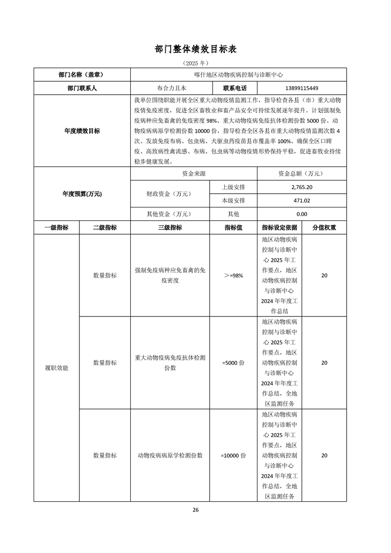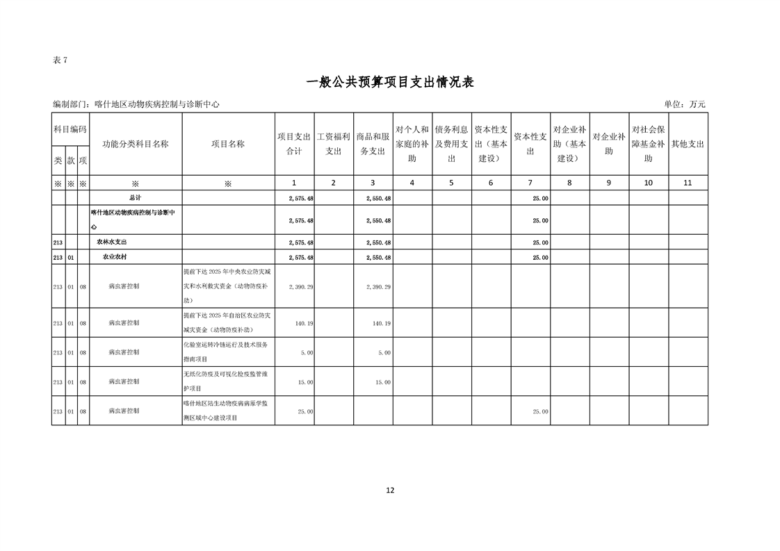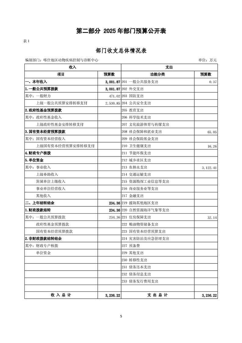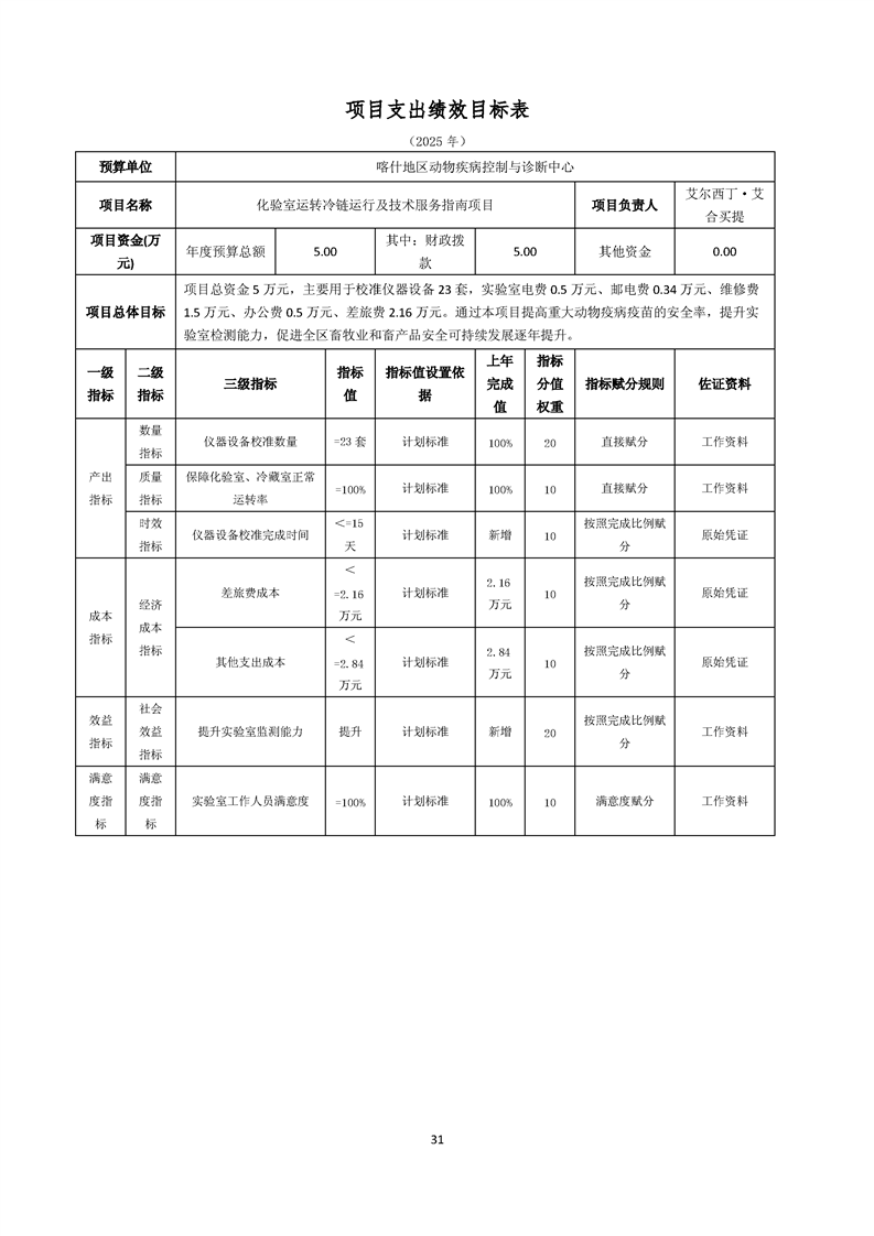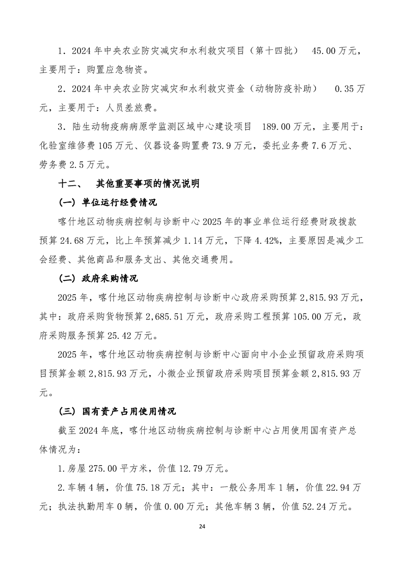 154.喀什地区动物疾病控制与诊断中心2025年部门预算公开报告