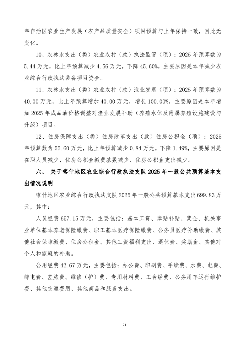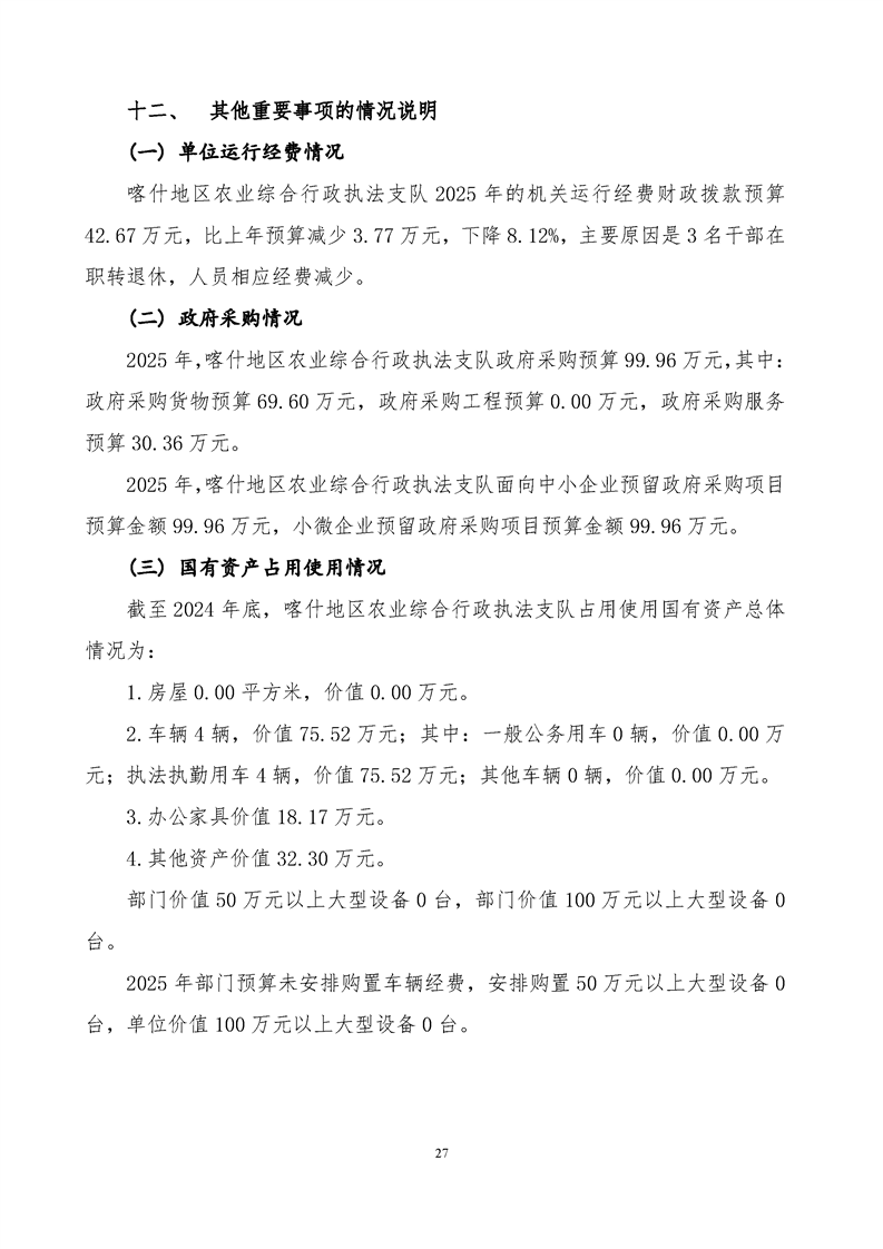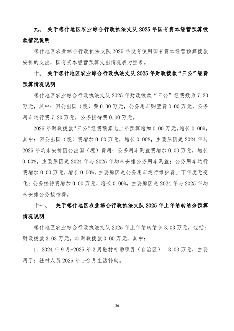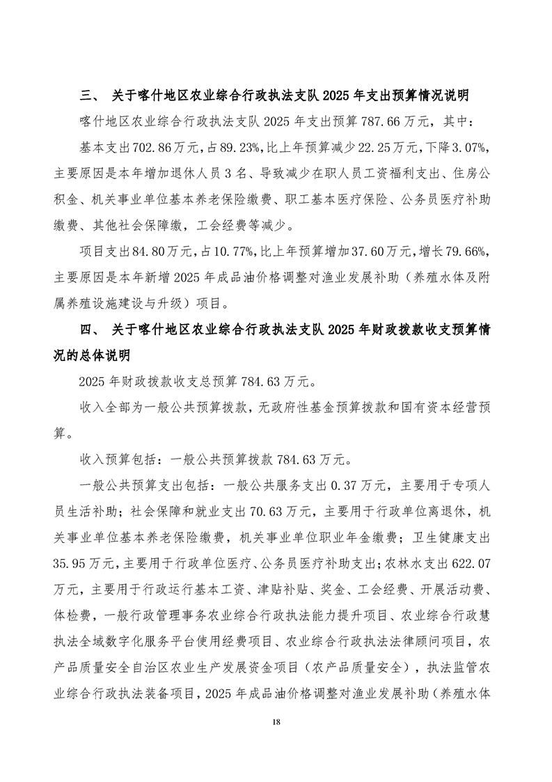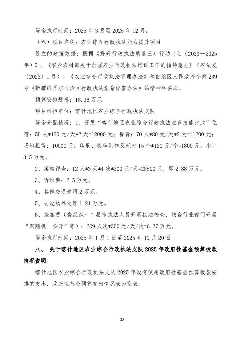 148.喀什地区农业综合行政执法支队2025年部门预算公开报告
