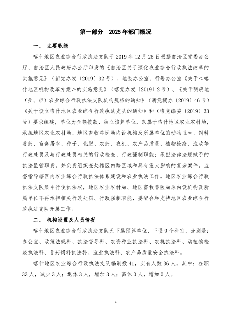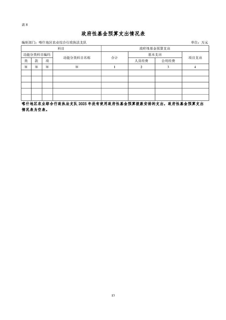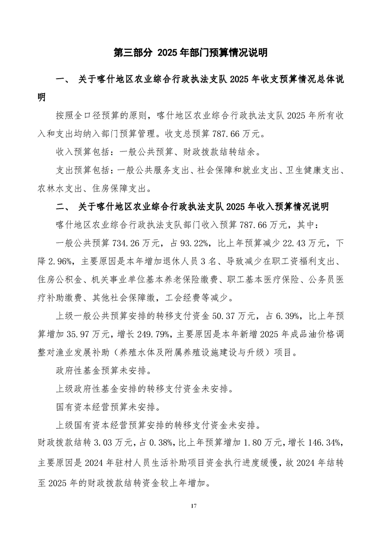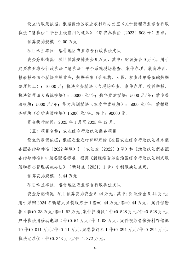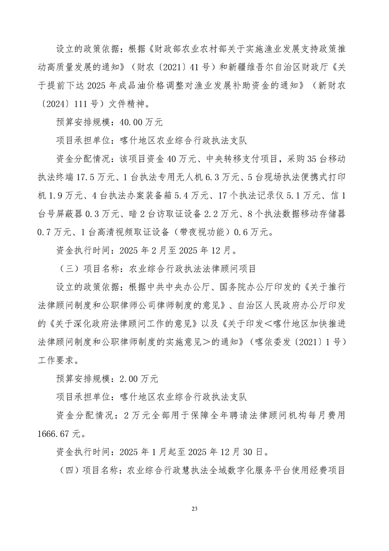 148.喀什地区农业综合行政执法支队2025年部门预算公开报告