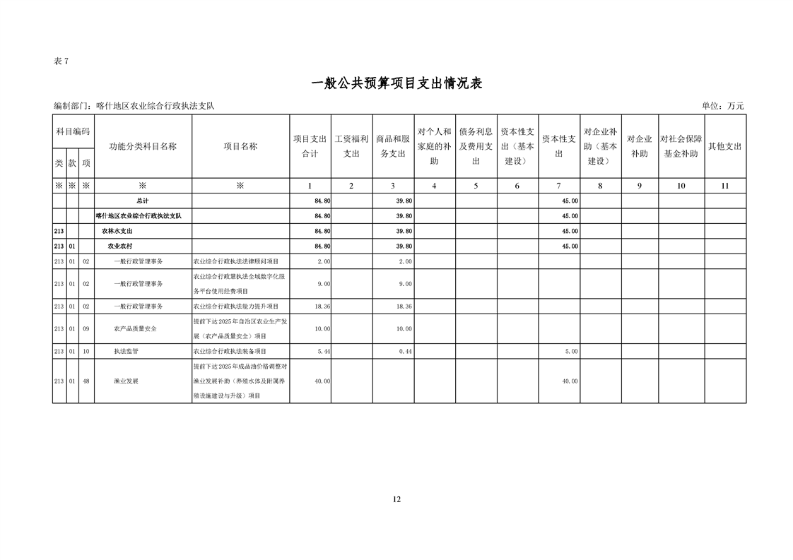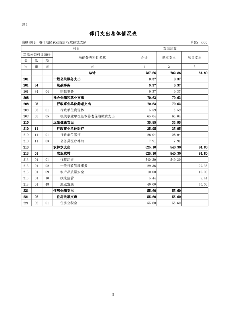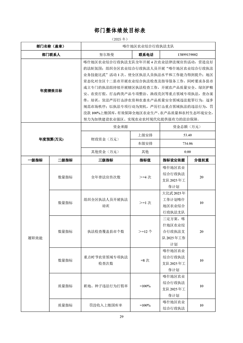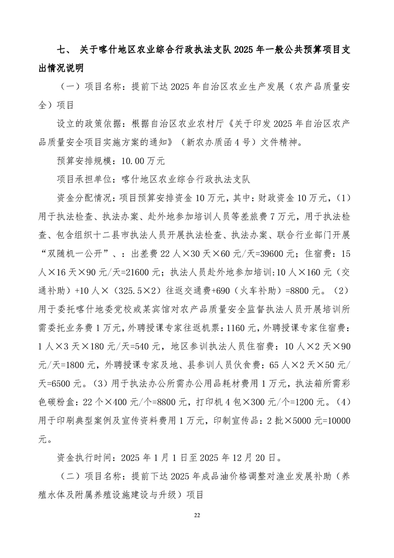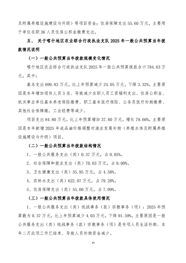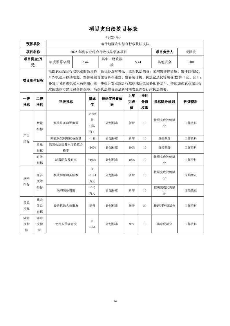148.喀什地区农业综合行政执法支队2025年部门预算公开报告