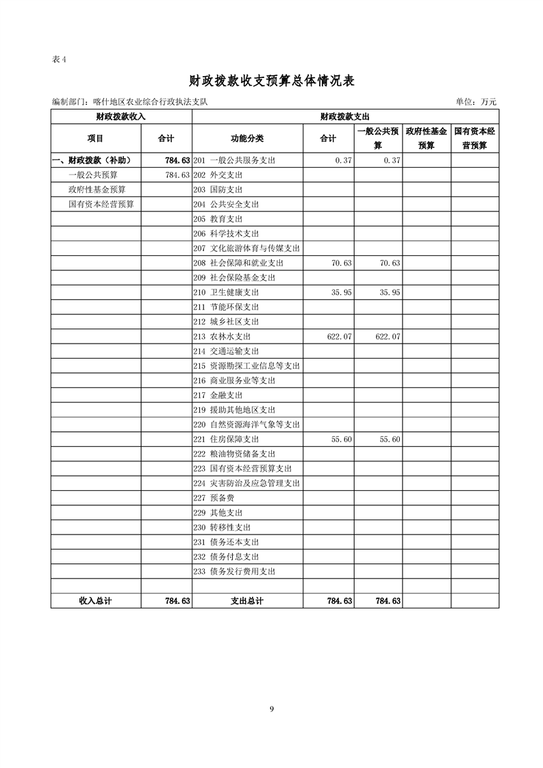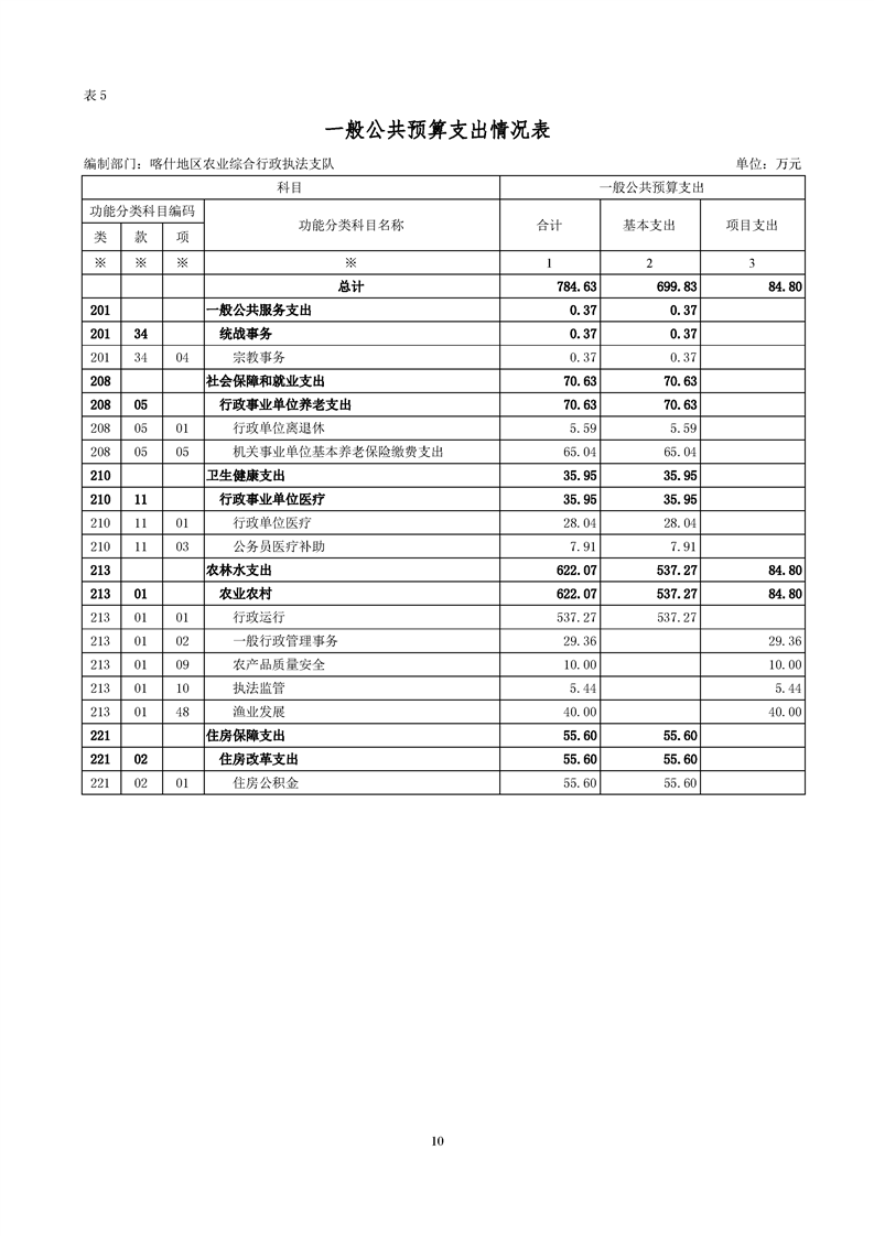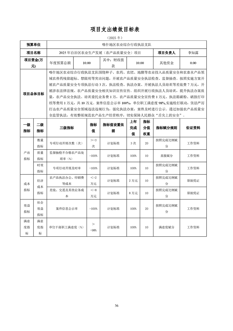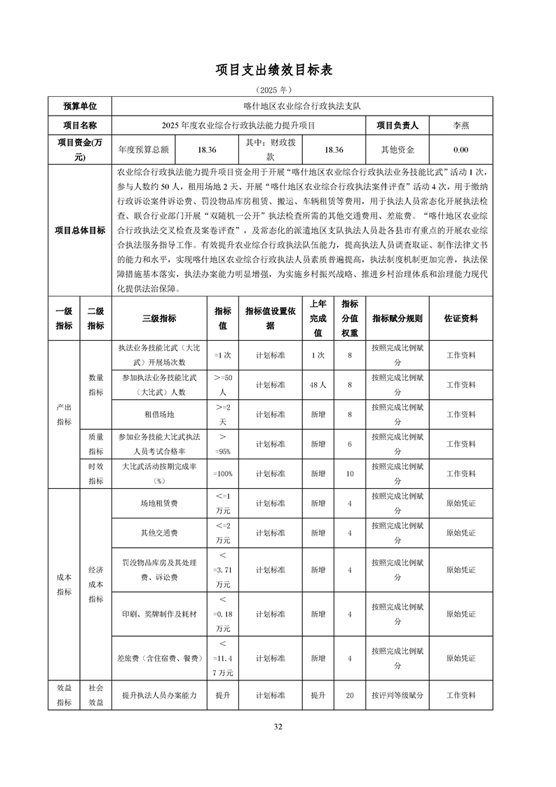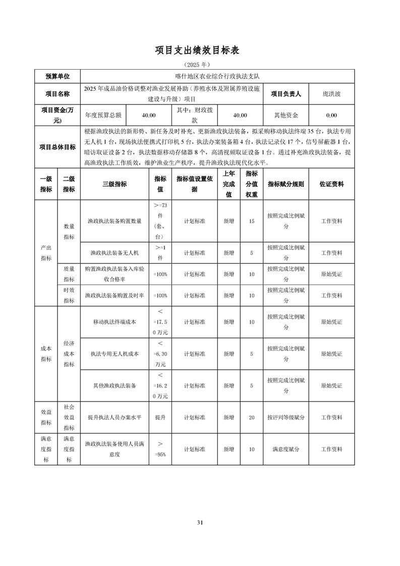 148.喀什地区农业综合行政执法支队2025年部门预算公开报告