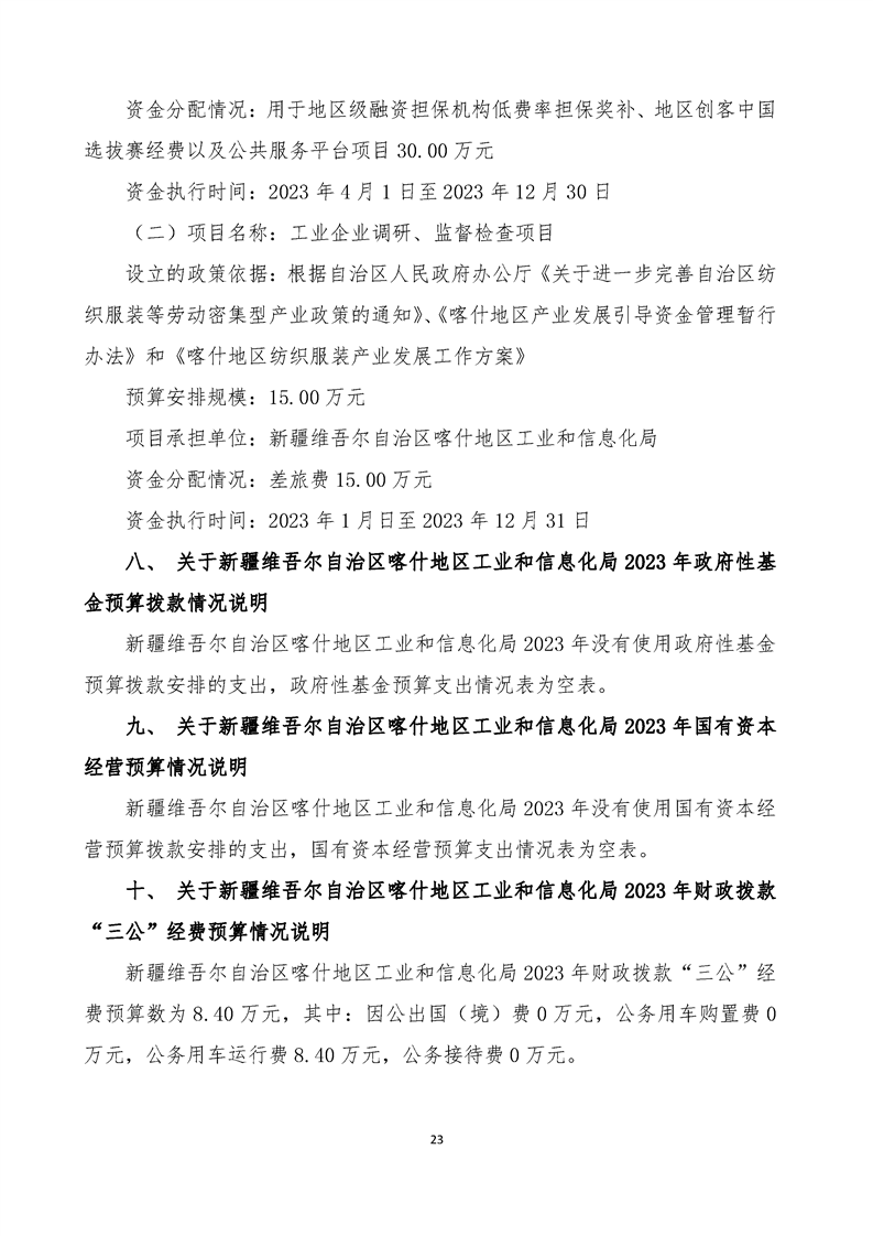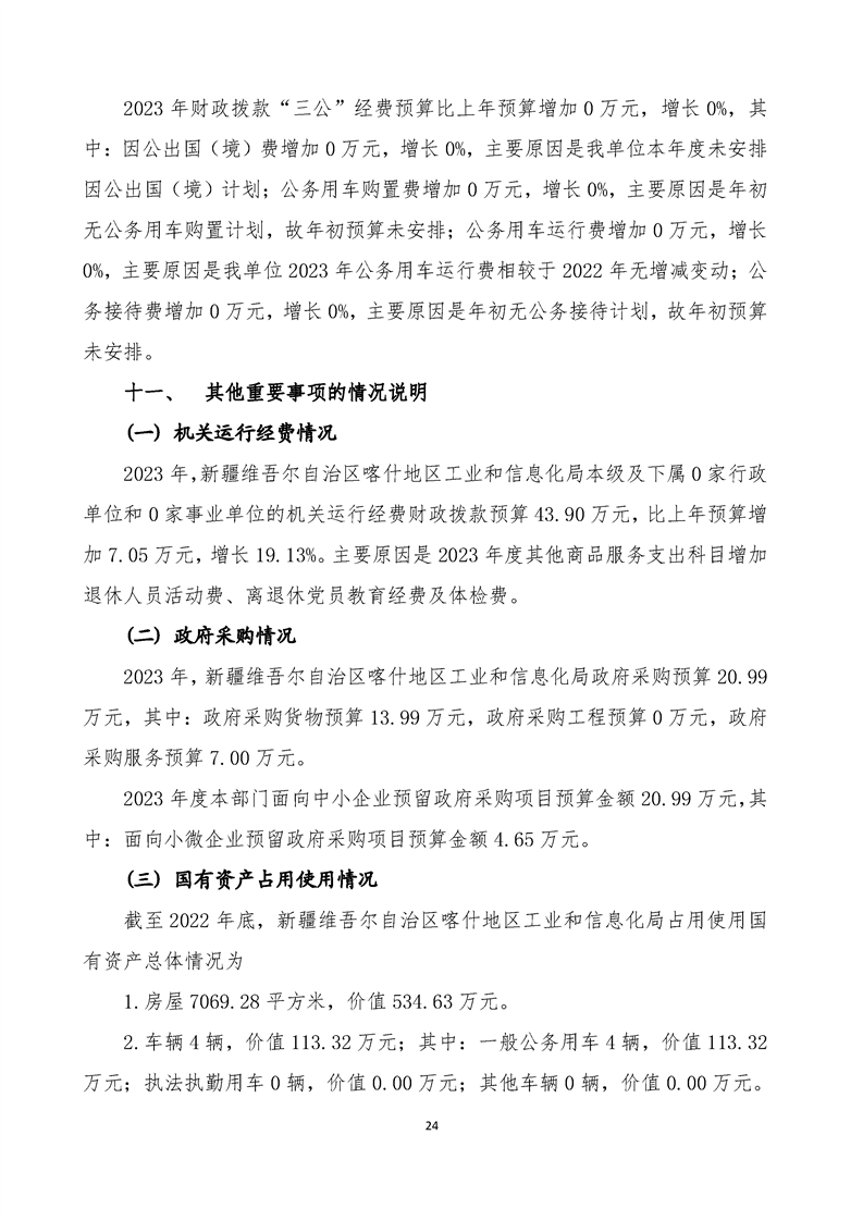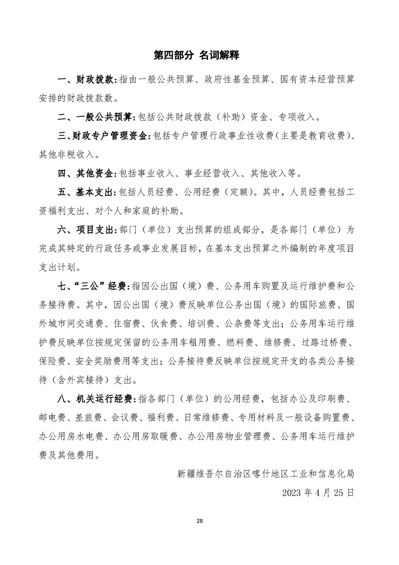 83.喀什地区工业和信息化局2023年部门预算公开报告