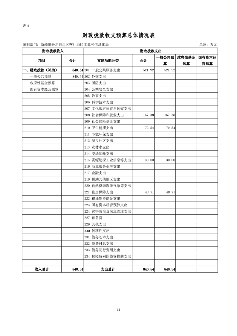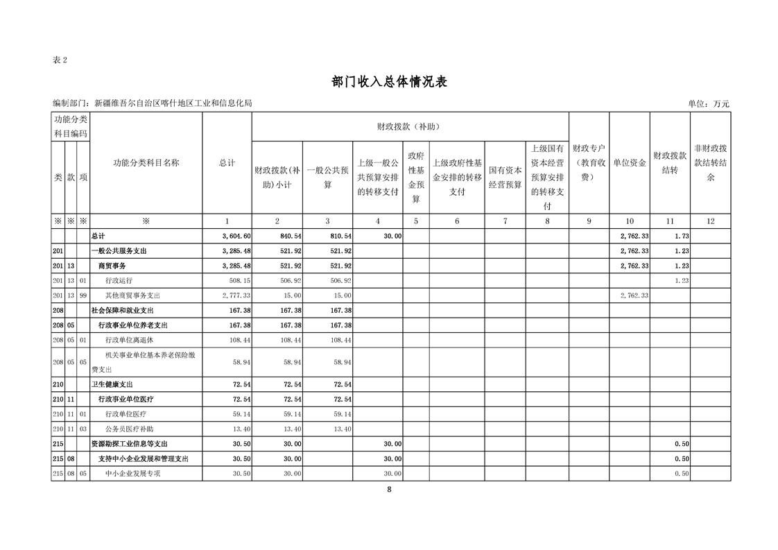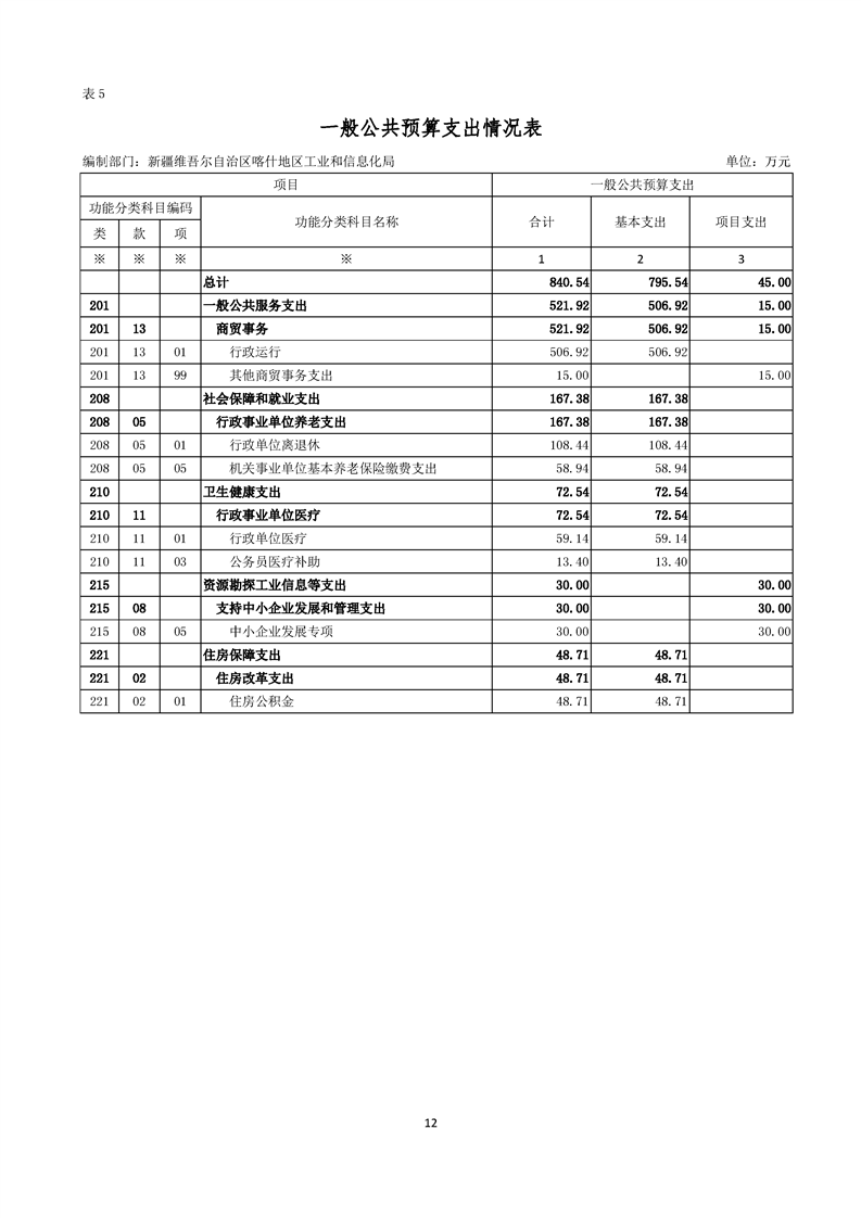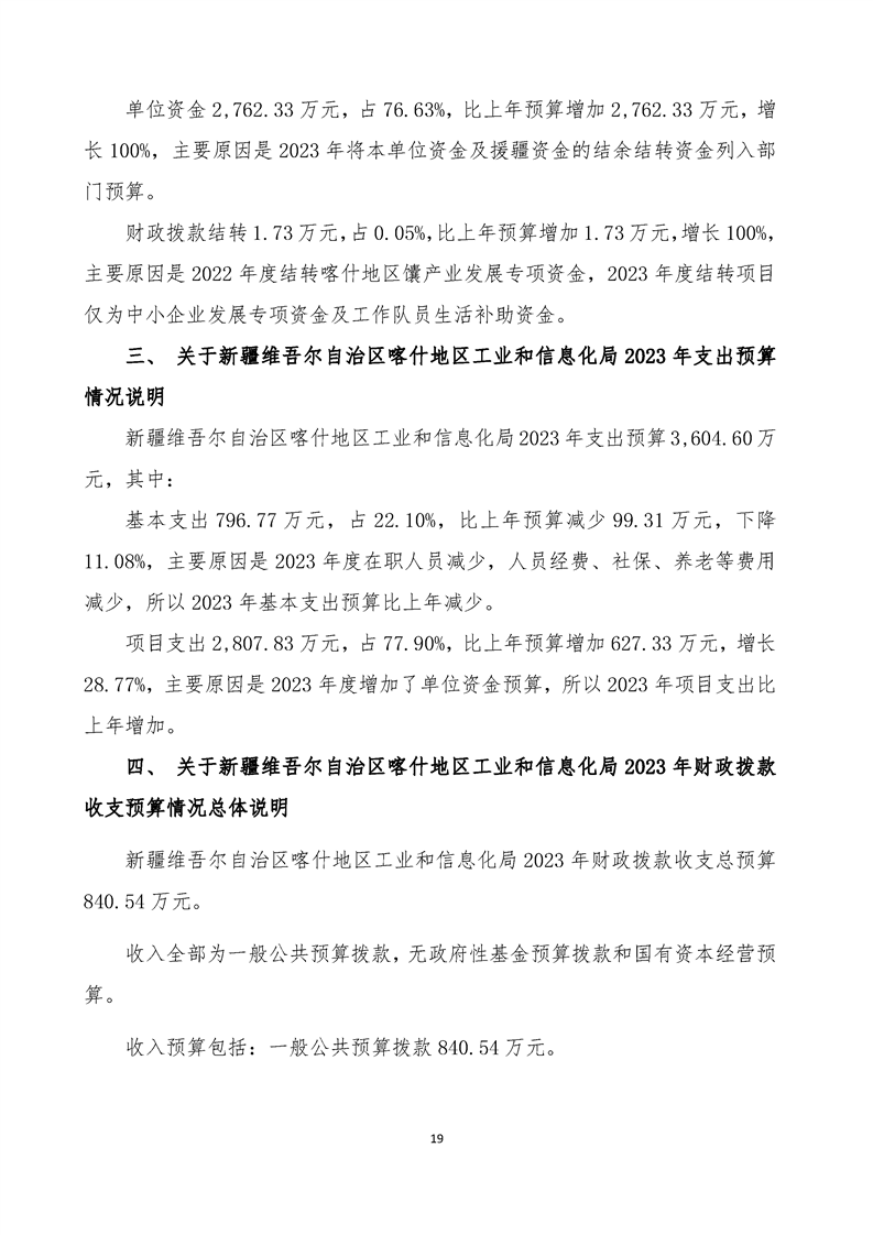 83.喀什地区工业和信息化局2023年部门预算公开报告