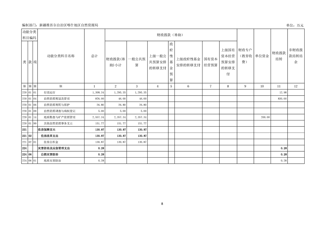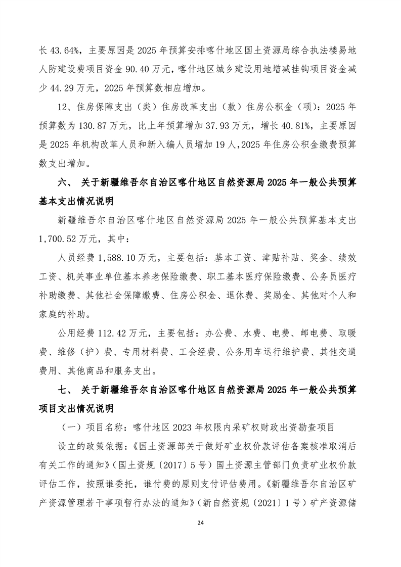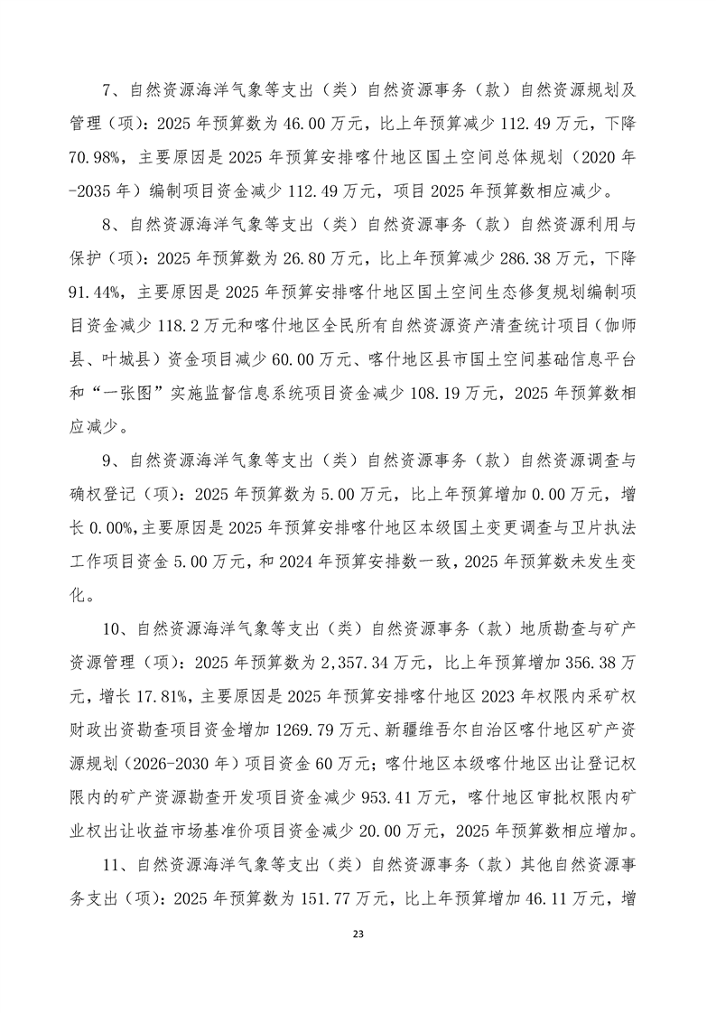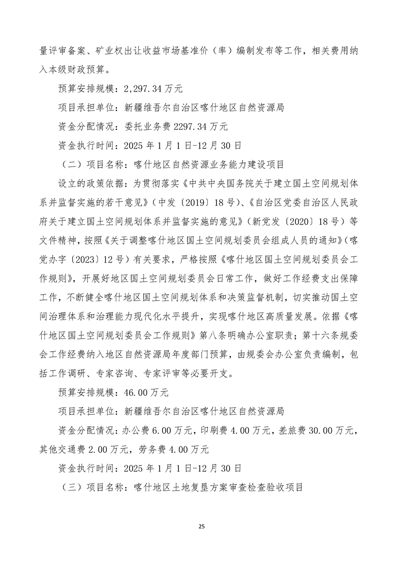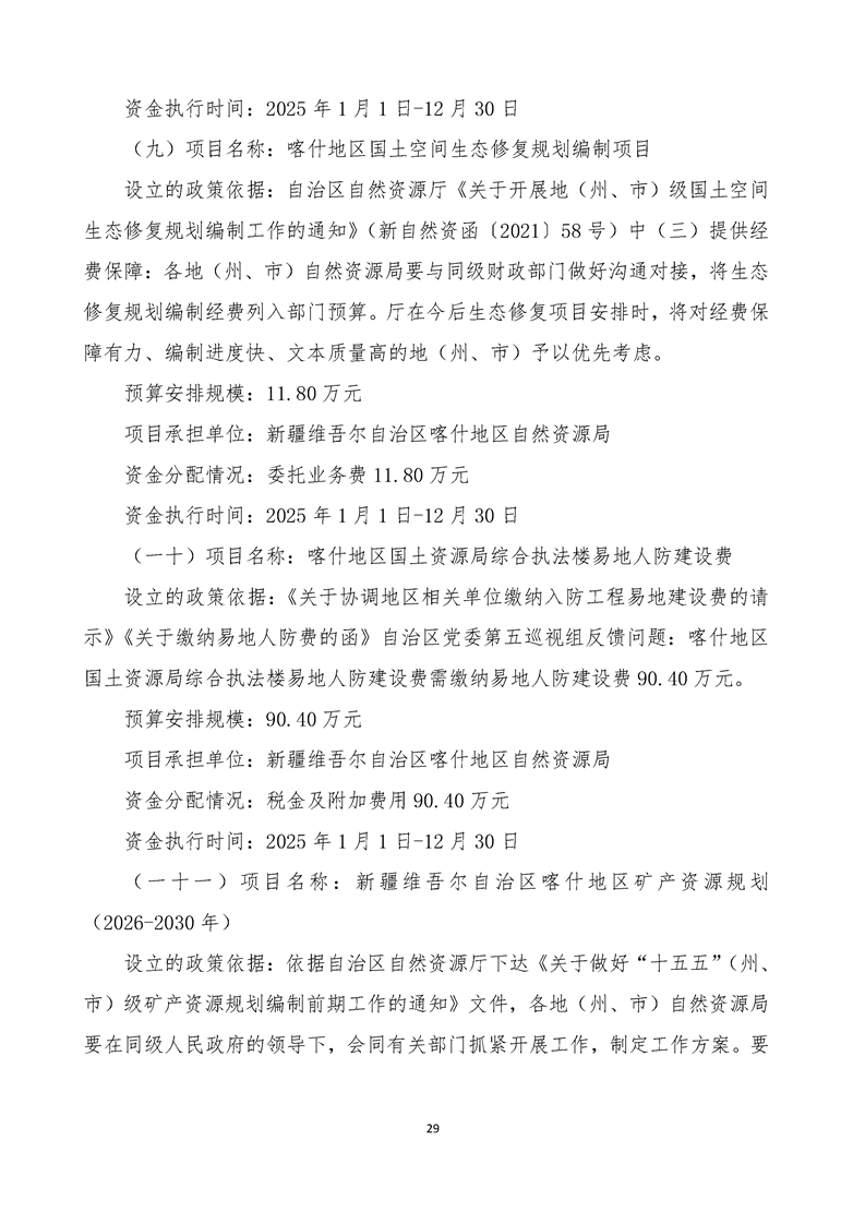 92.喀什地区自然资源局2025年部门预算公开报告