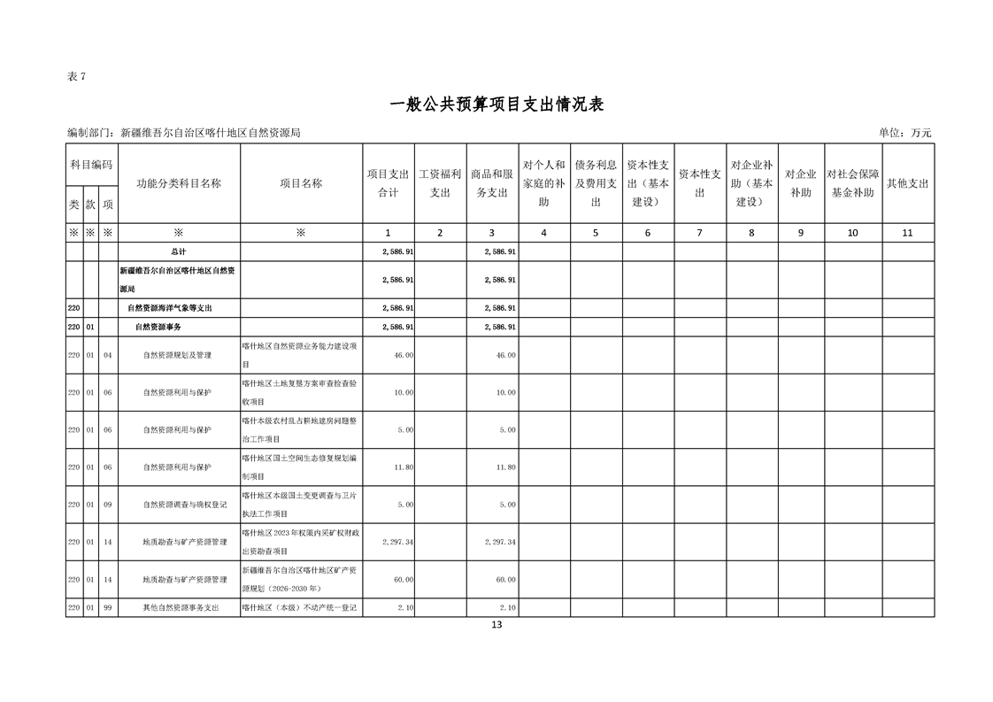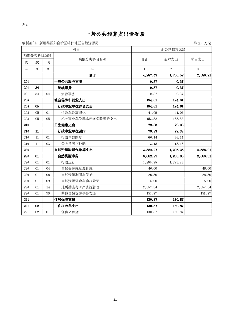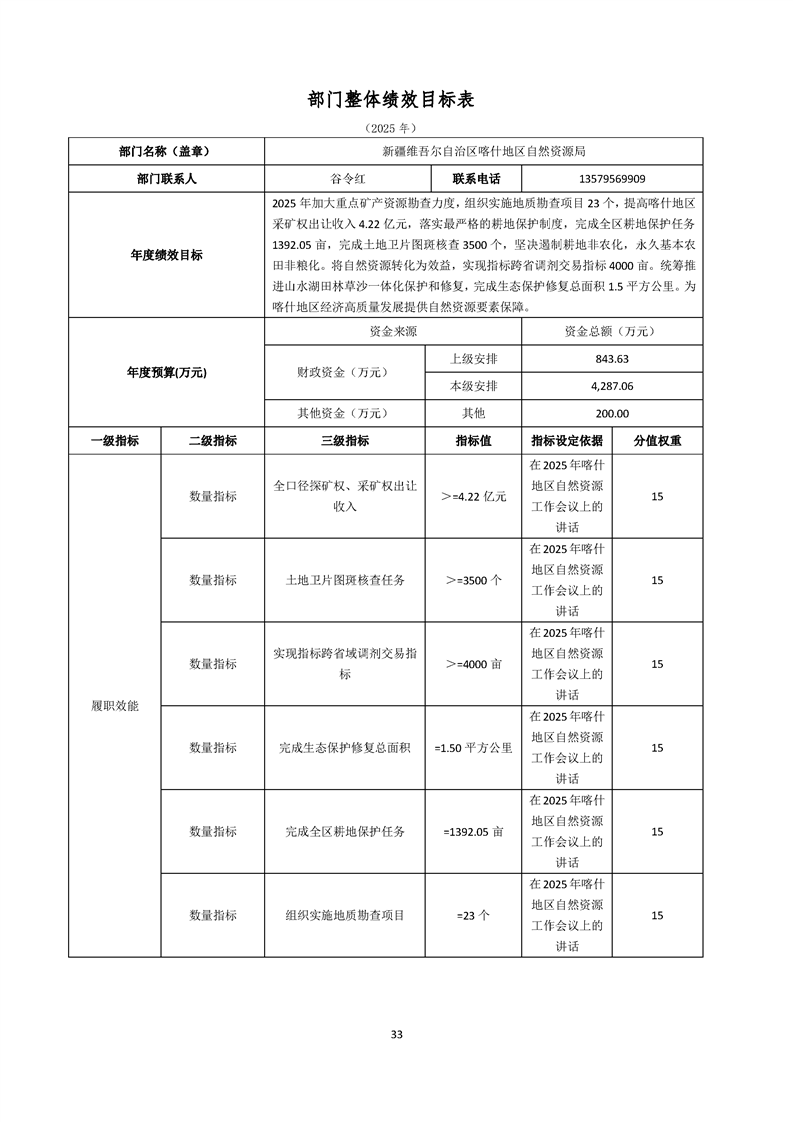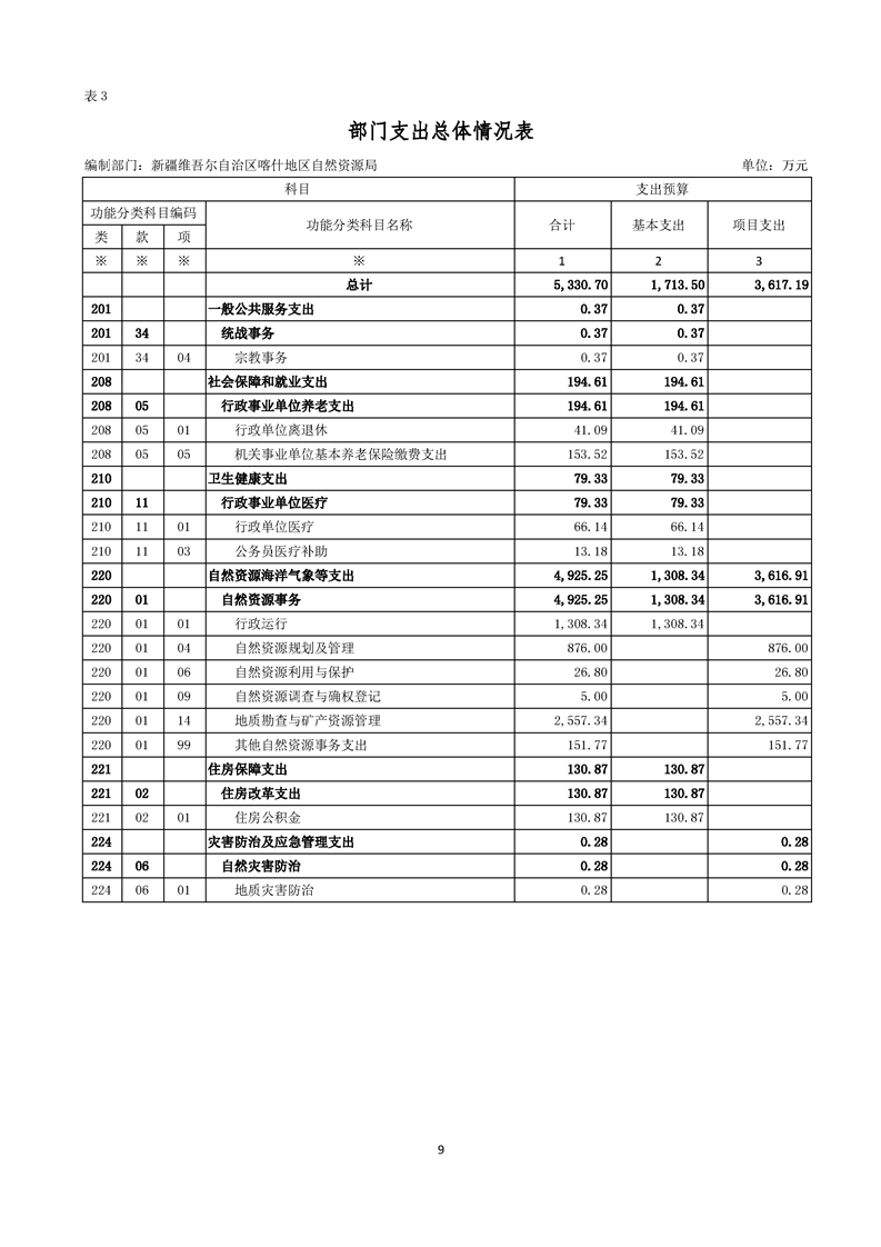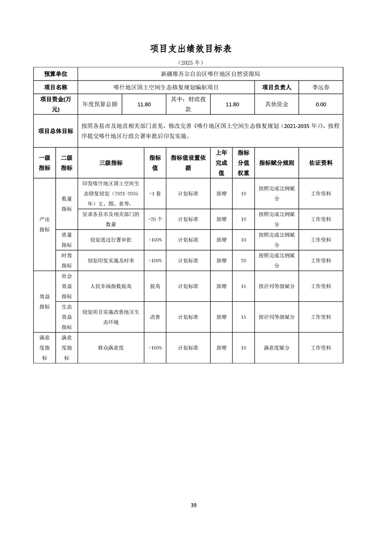 92.喀什地区自然资源局2025年部门预算公开报告