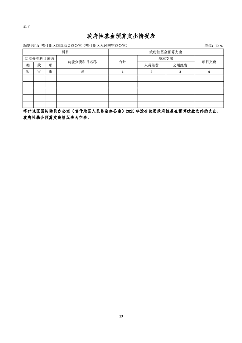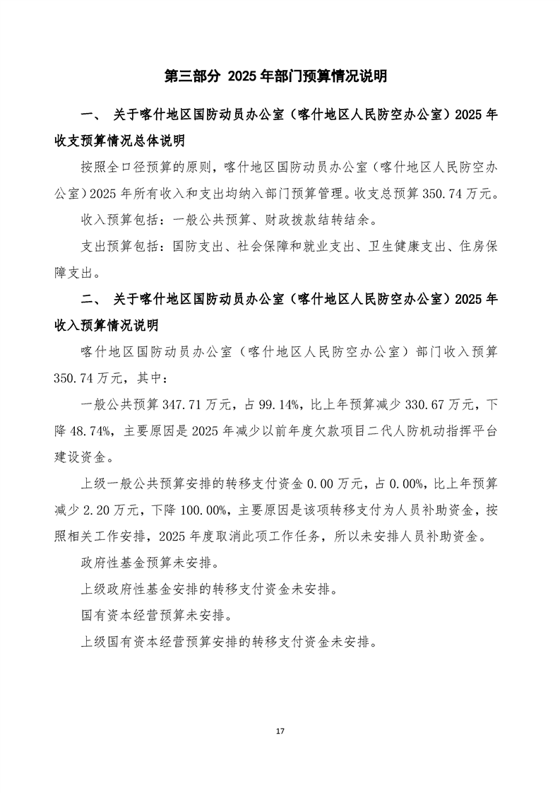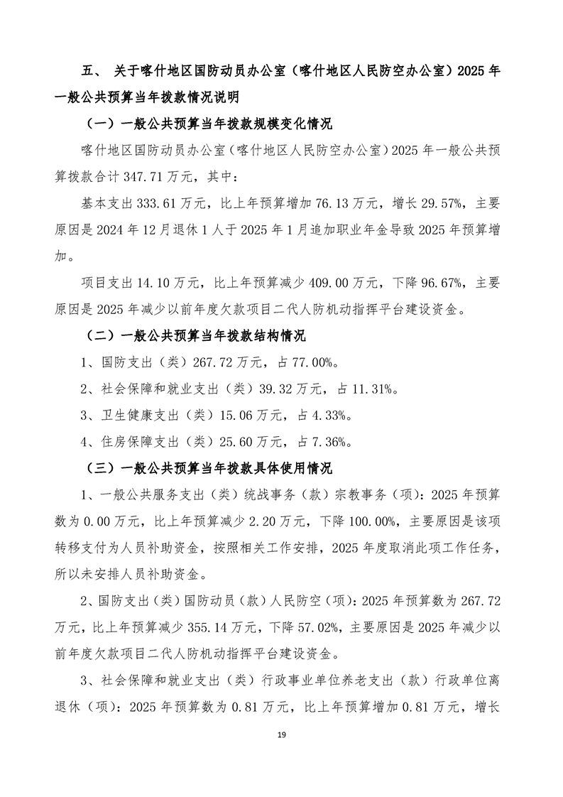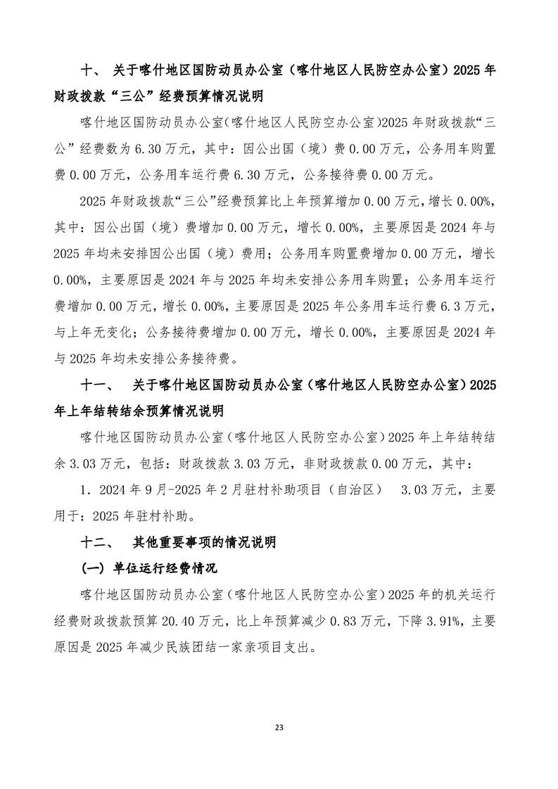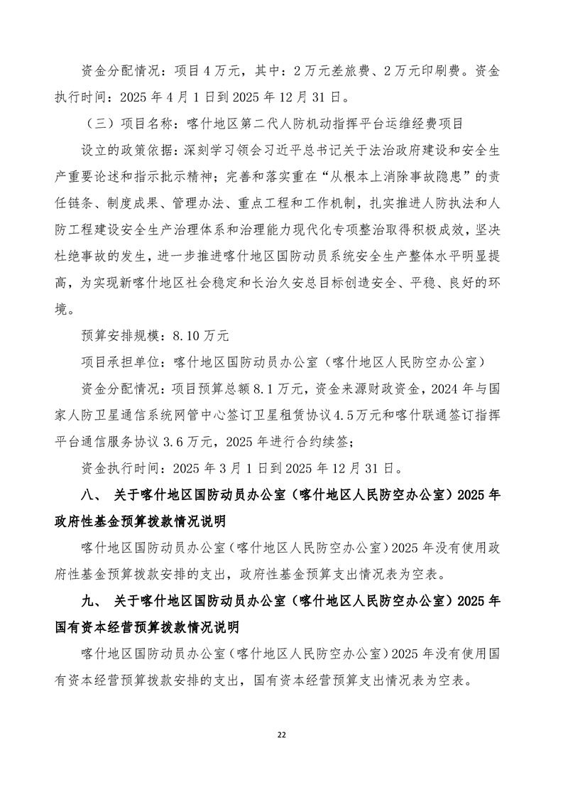 110.喀什地区国防动员办公室(喀什地区人民防空办公室)2025年部门预算公开报告