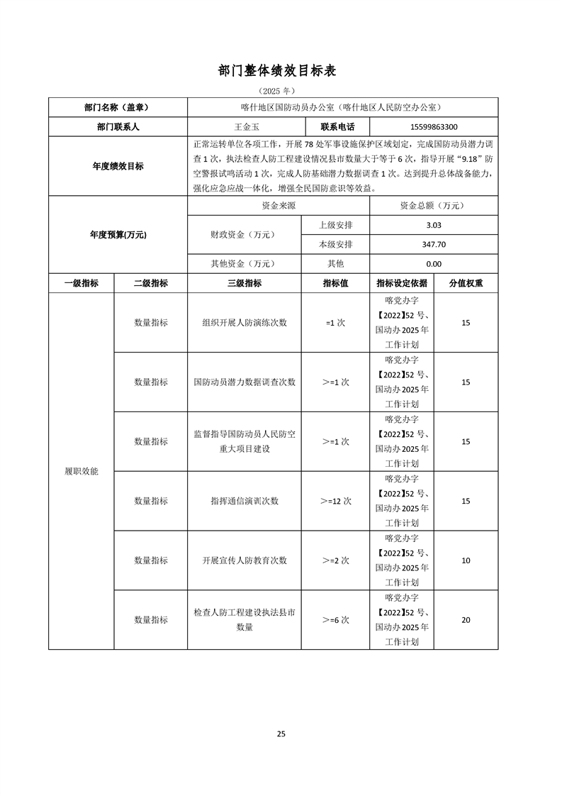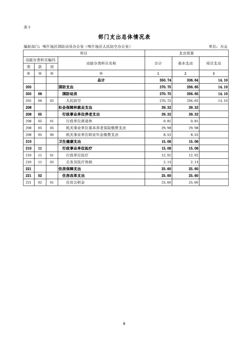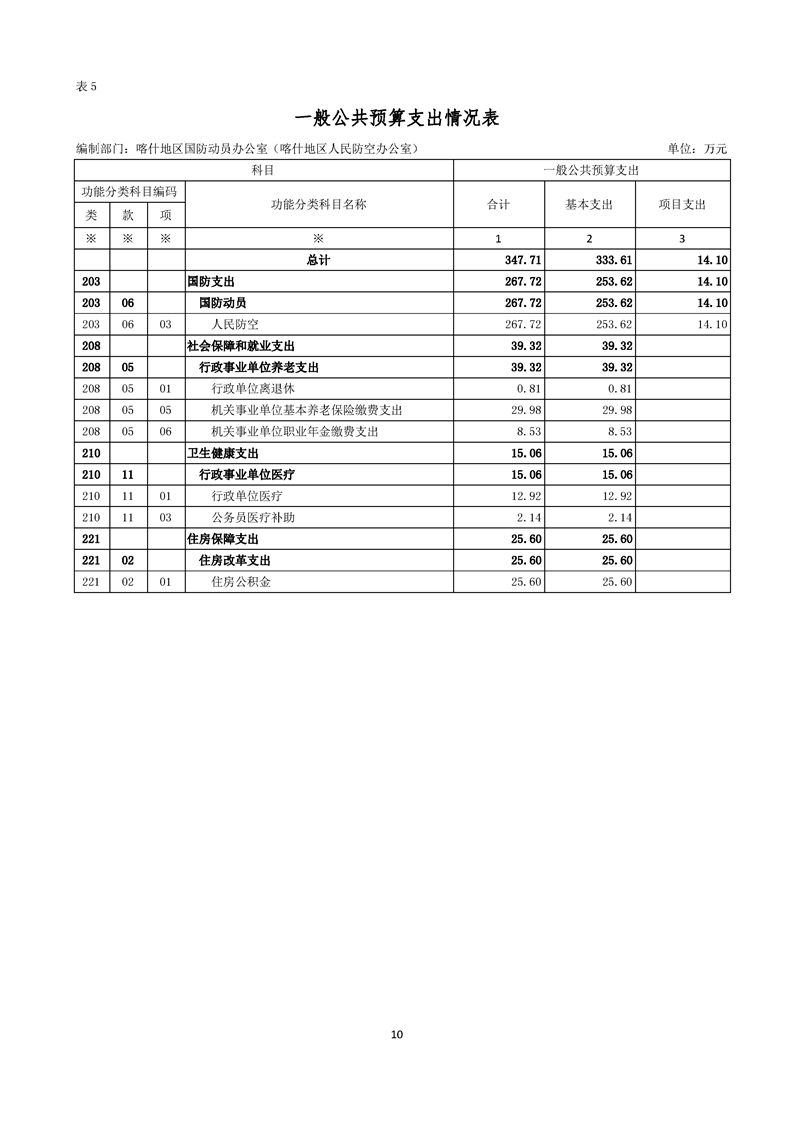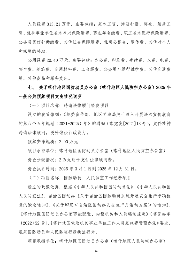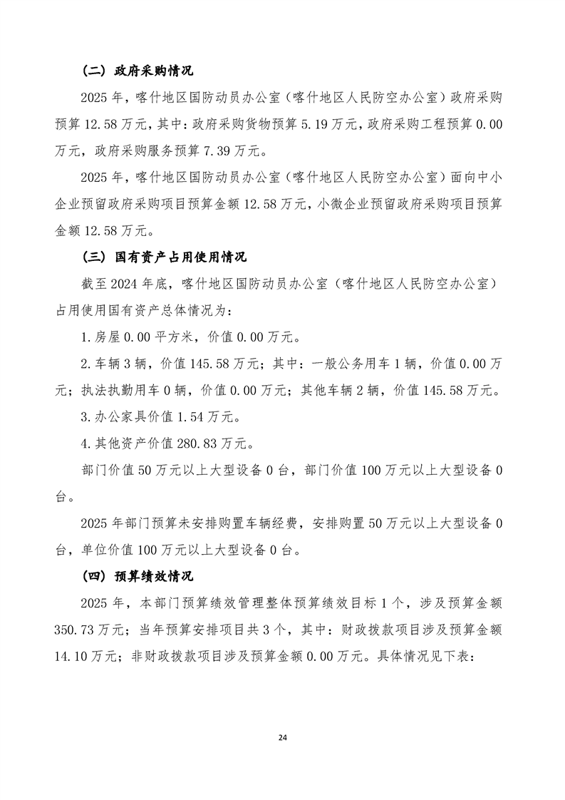 110.喀什地区国防动员办公室(喀什地区人民防空办公室)2025年部门预算公开报告