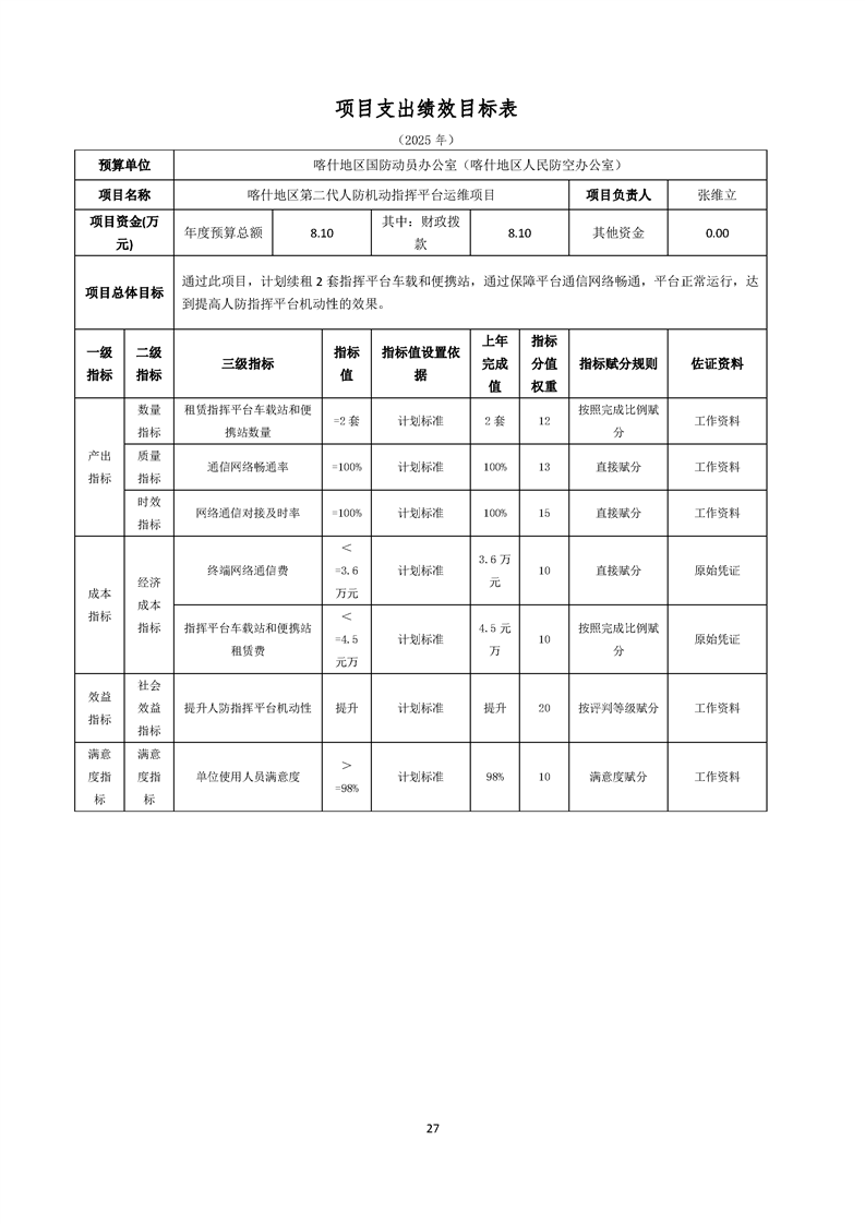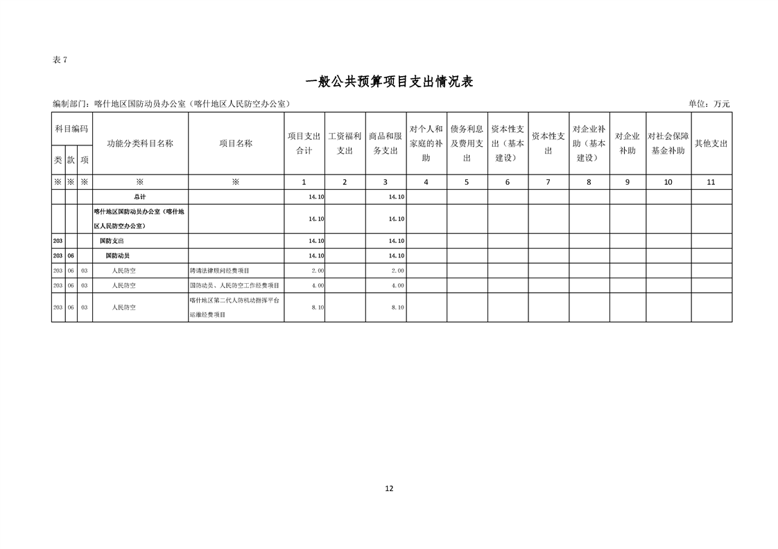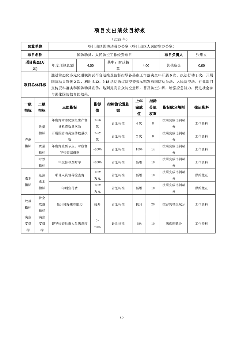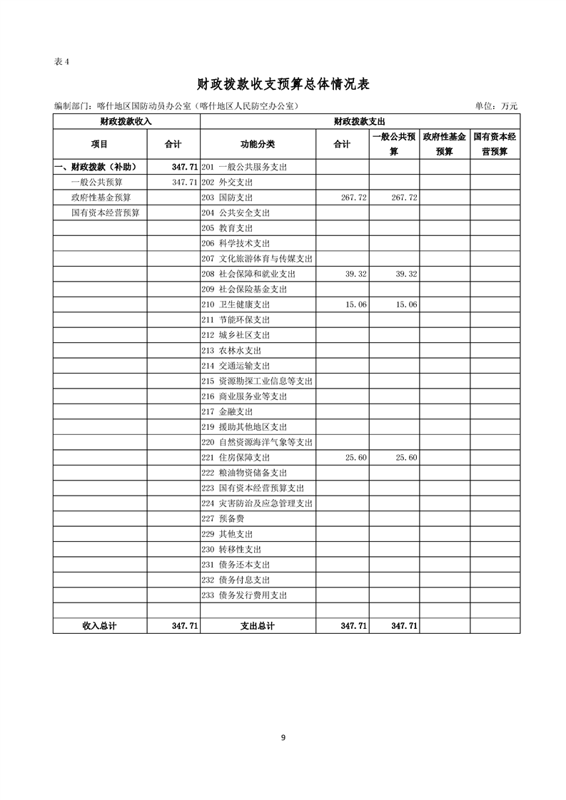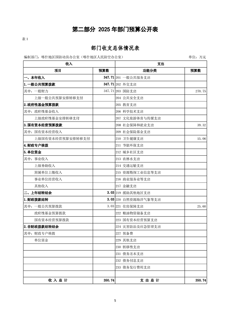 110.喀什地区国防动员办公室(喀什地区人民防空办公室)2025年部门预算公开报告