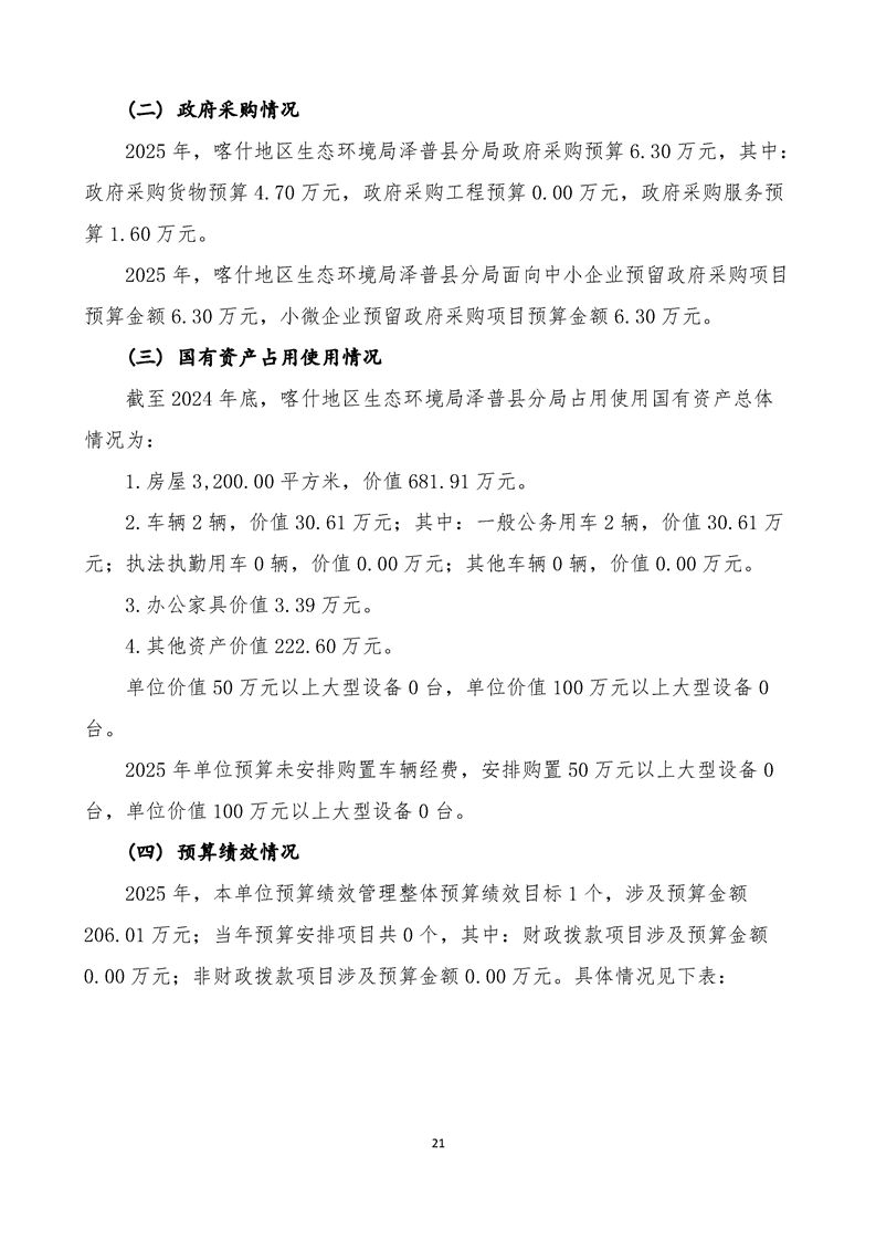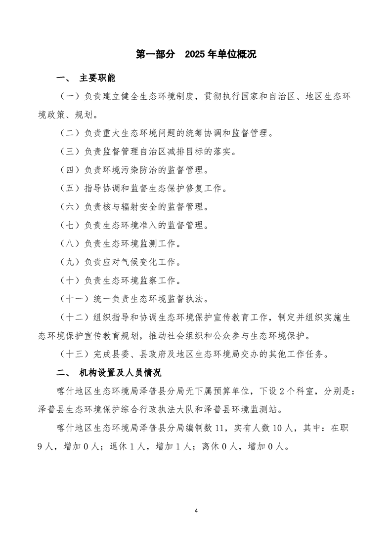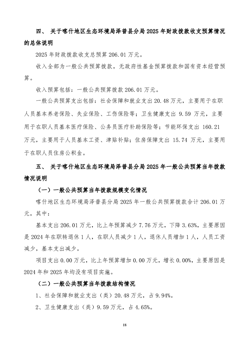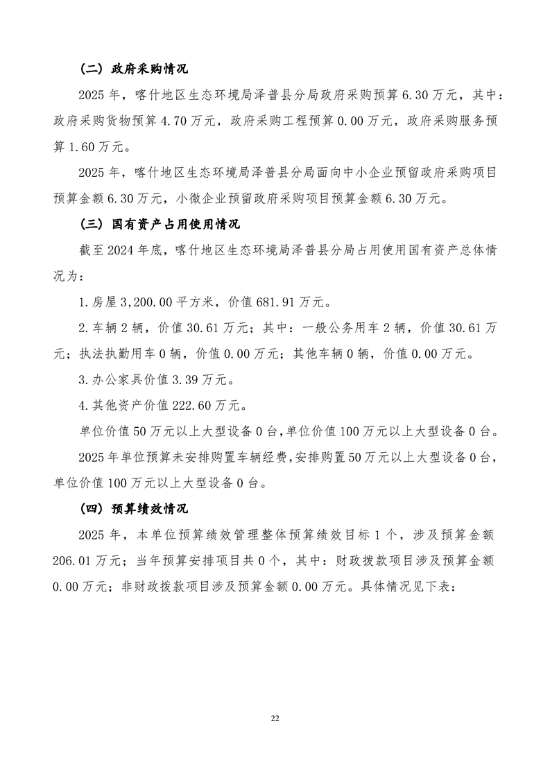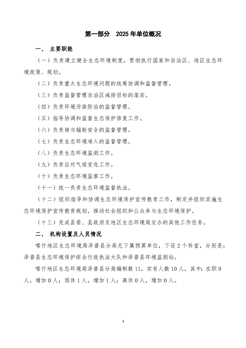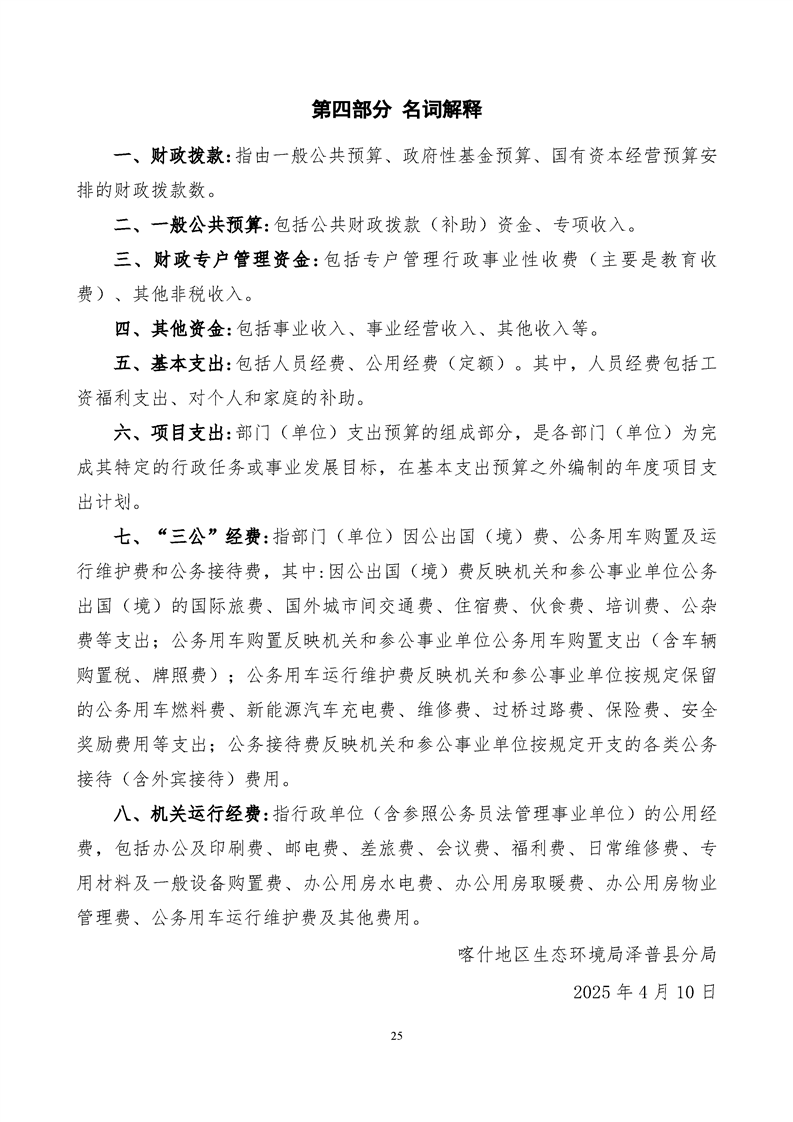 喀什地区生态环境局泽普县分局2025年单位预算公开报告