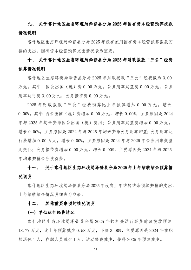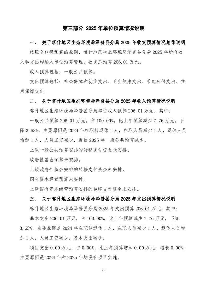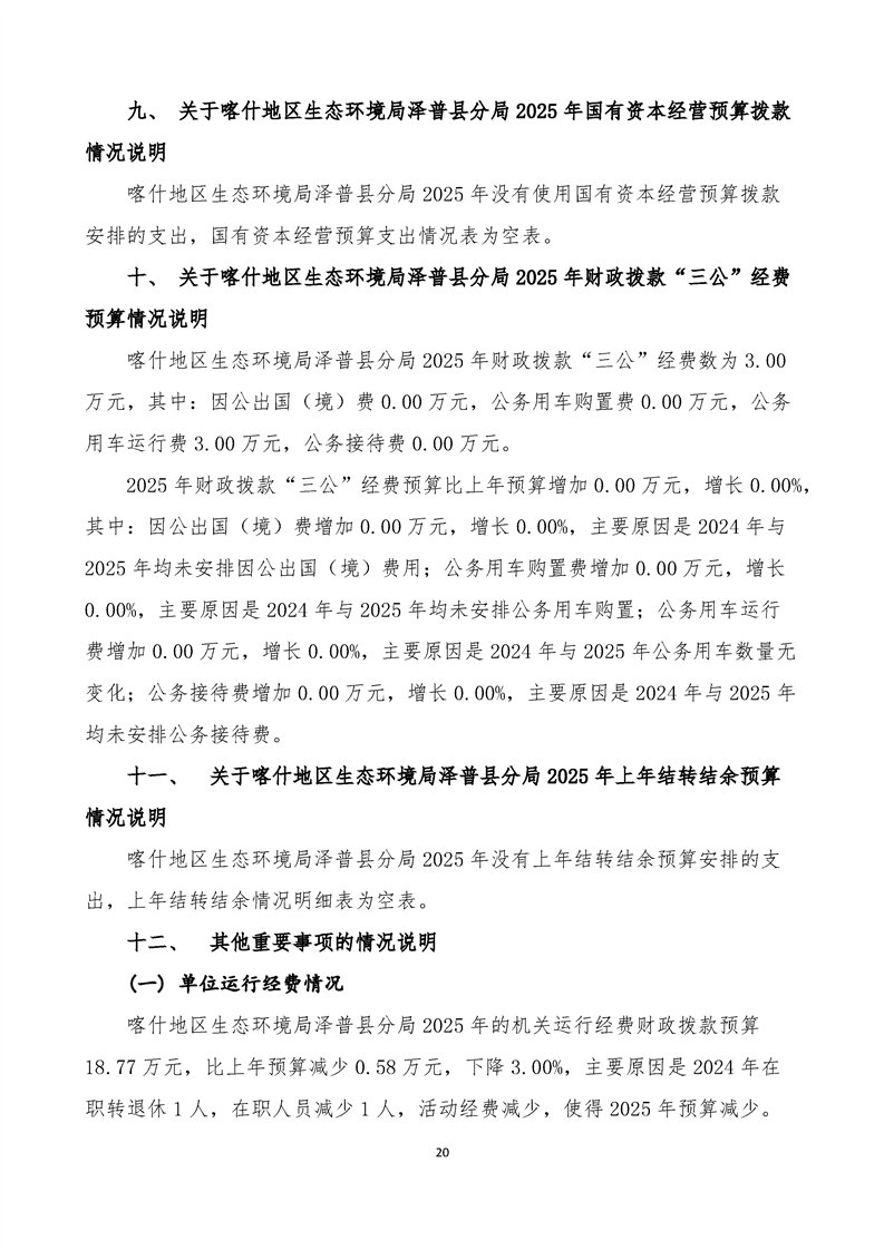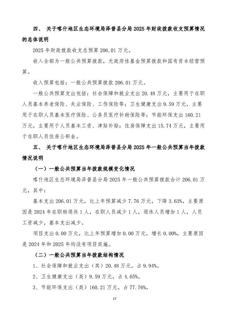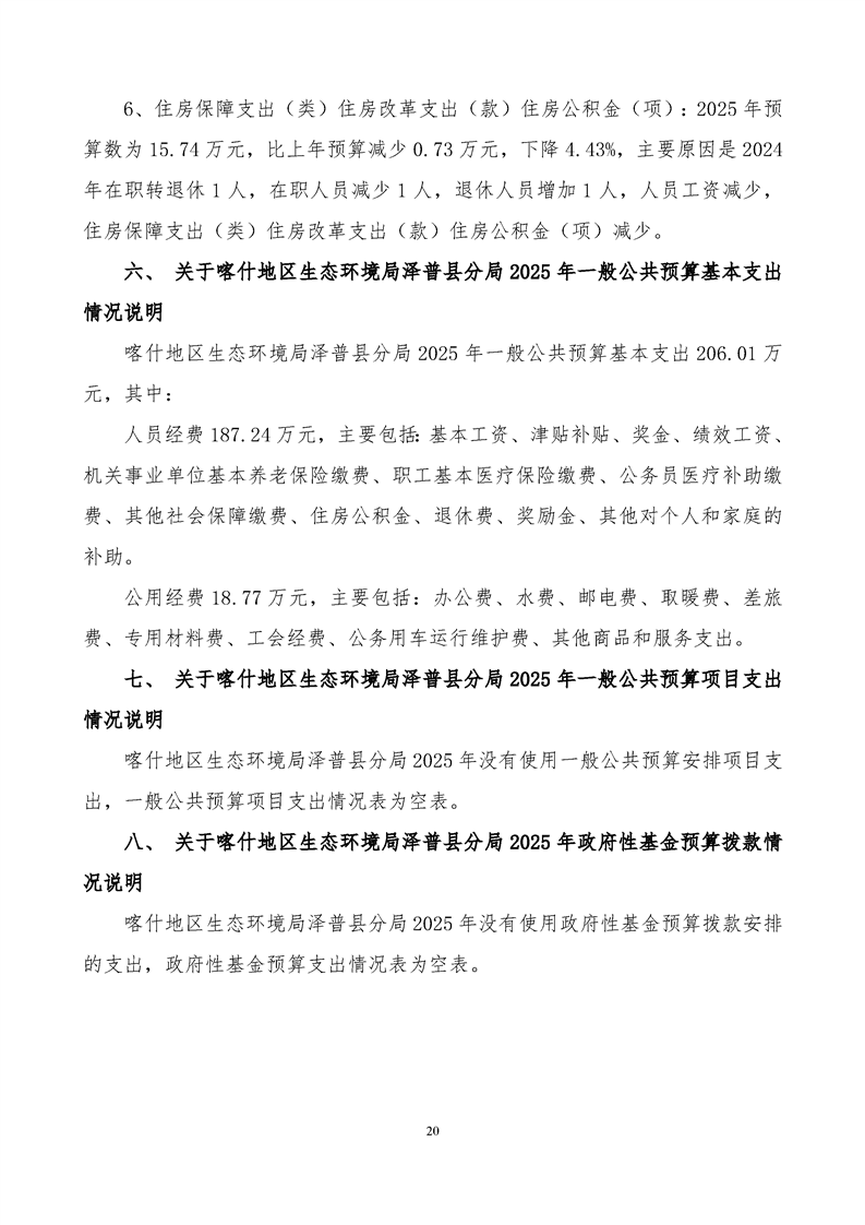 喀什地区生态环境局泽普县分局2025年单位预算公开报告