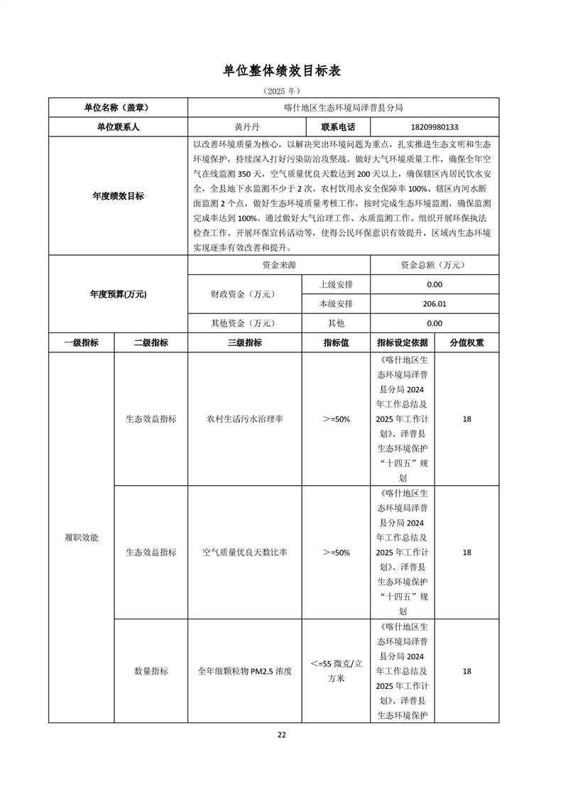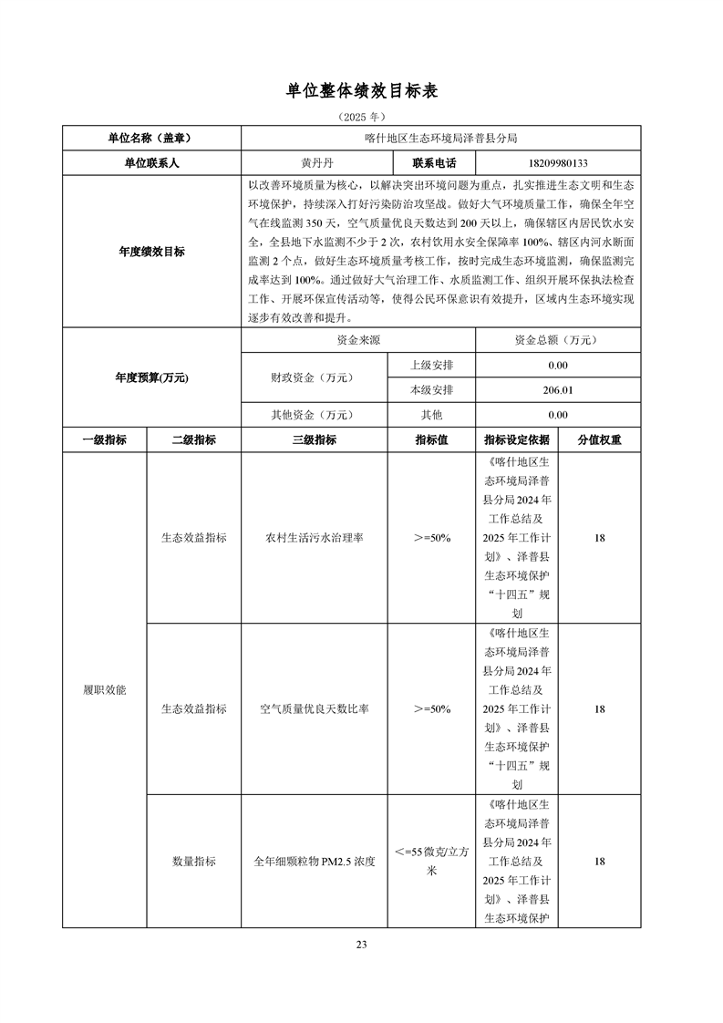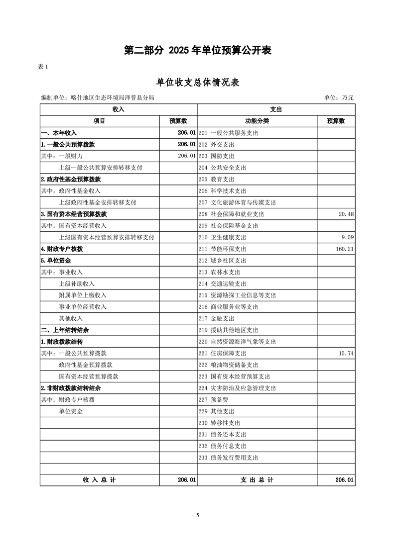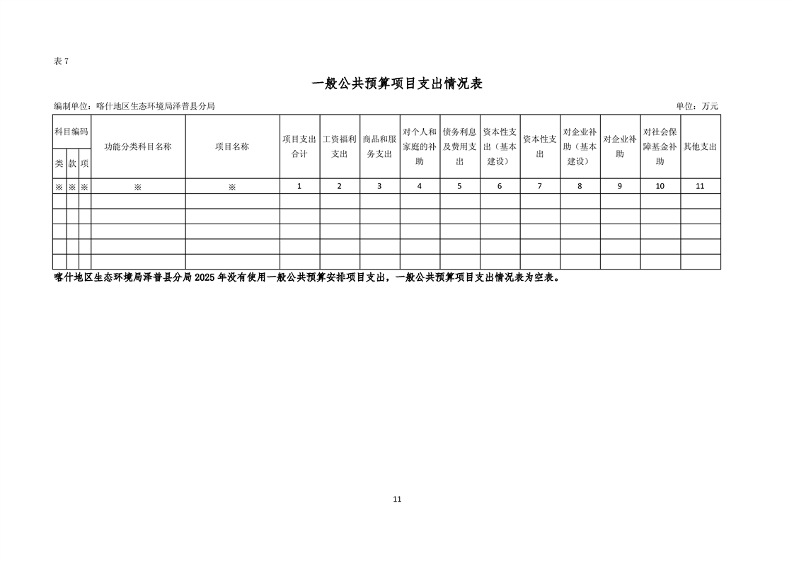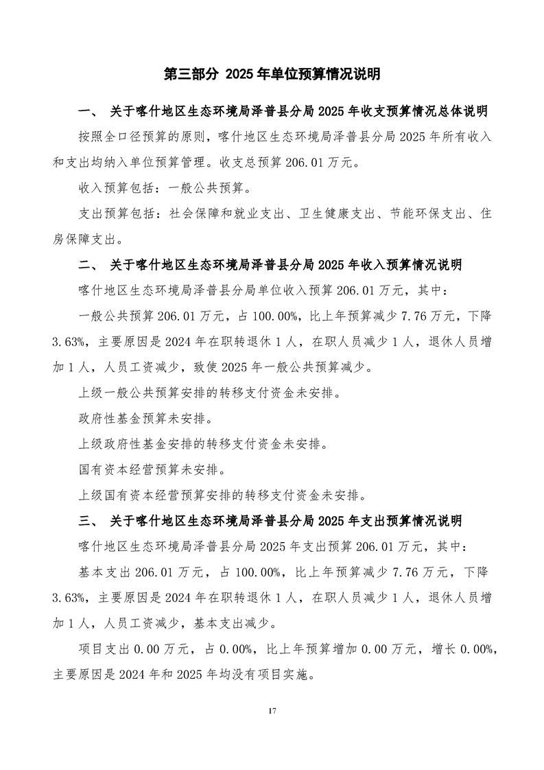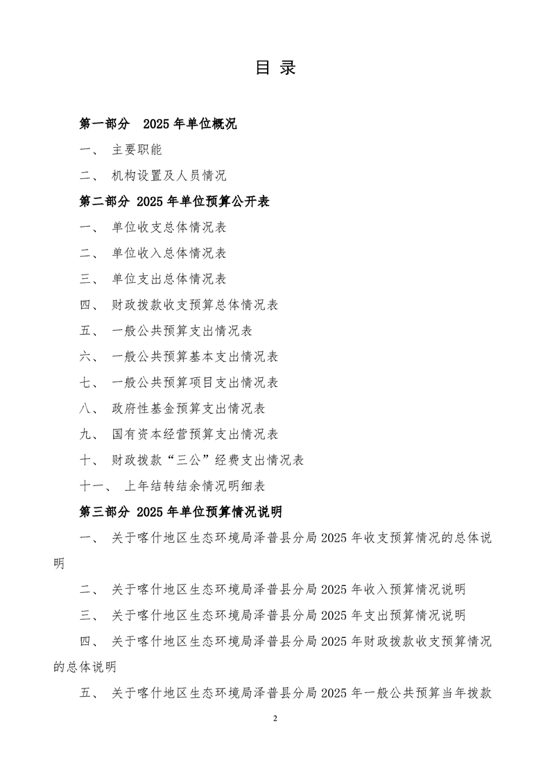 喀什地区生态环境局泽普县分局2025年单位预算公开报告