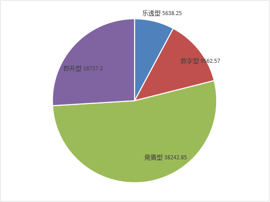 体育彩票销量72180.87万元,分种类其中:乐透型销量为5638.25万元;数字型销量为9562.57万元;竞猜型销量为38242.85万元;即开型销量为18737.2万元。