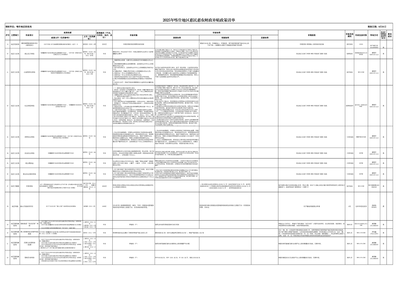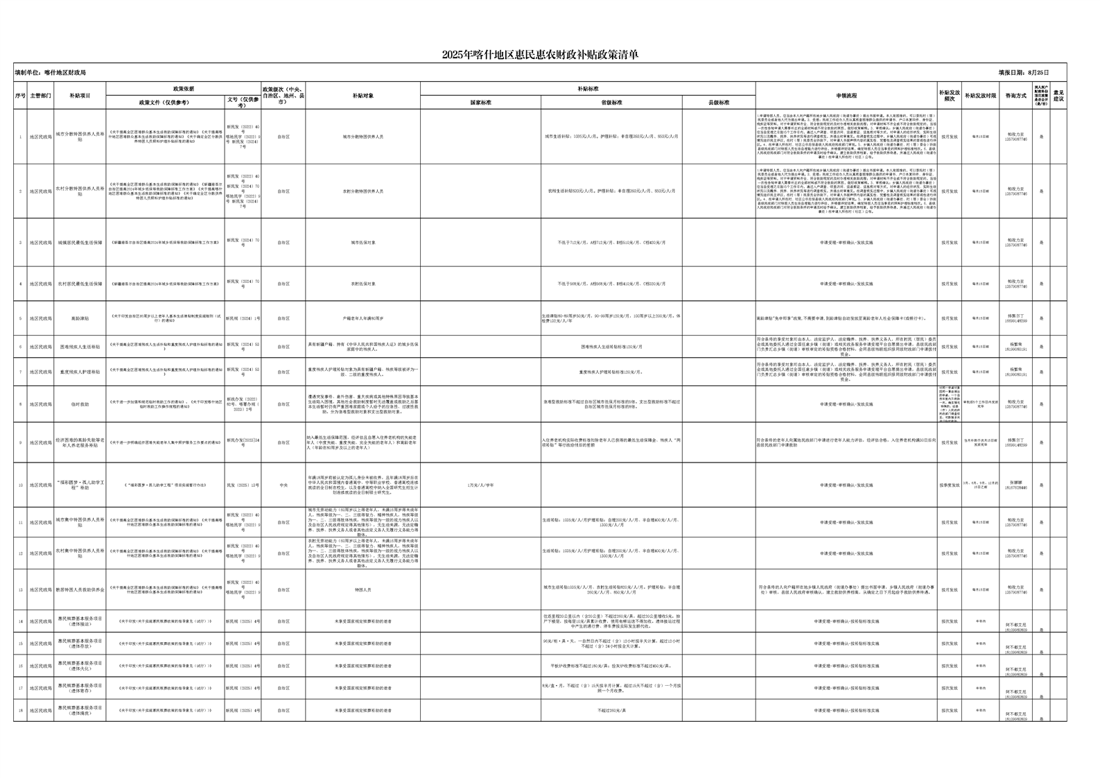 2025年度喀什地区惠民惠农财政补贴政策清单