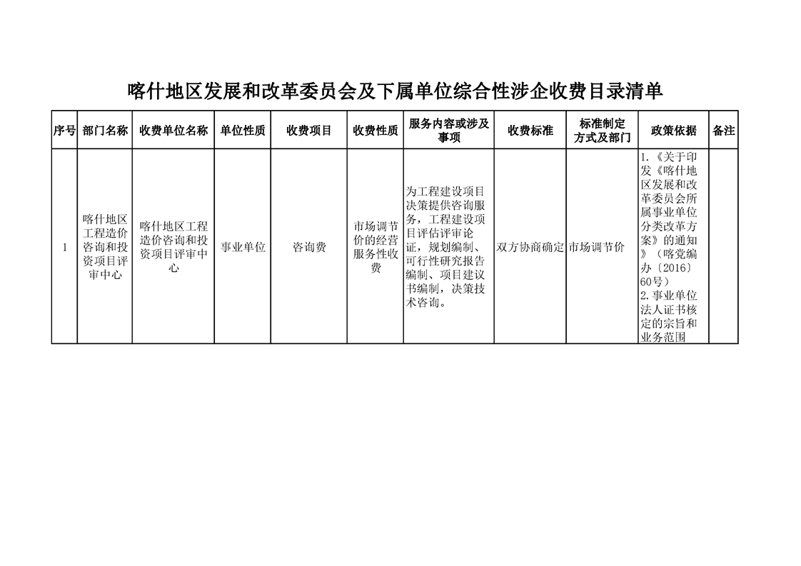 | 内容概述 | 喀什地区发展和改革委员会及下属单位 涉企收费 目录清单 | ||