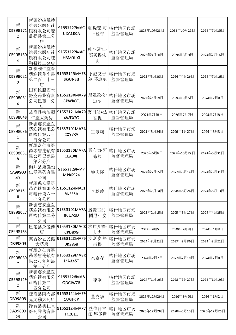 经企业申请,依据《中华人民共和国行政许可法》第七十条、《药品经营和使用质量监督管理办法》第二十七条的相关规定,现对《药品经营许可证》注销情况现予以公示(数据截至日期2024年10月30日),请社会各界予以监督。 监督电话:0998-2527315 |