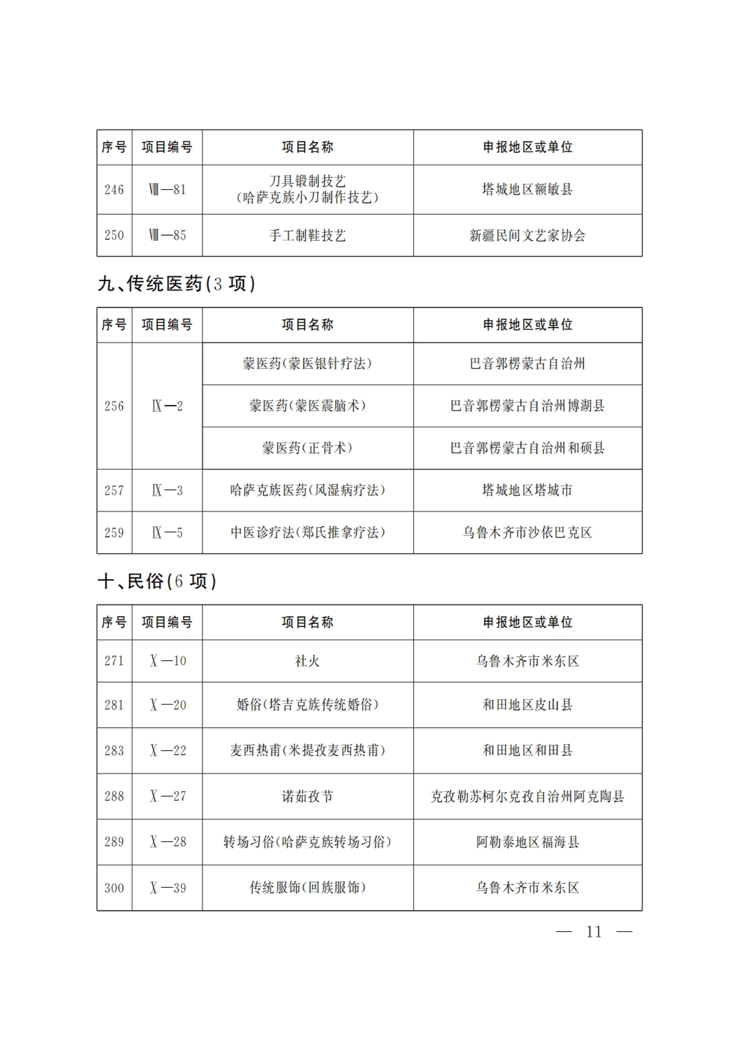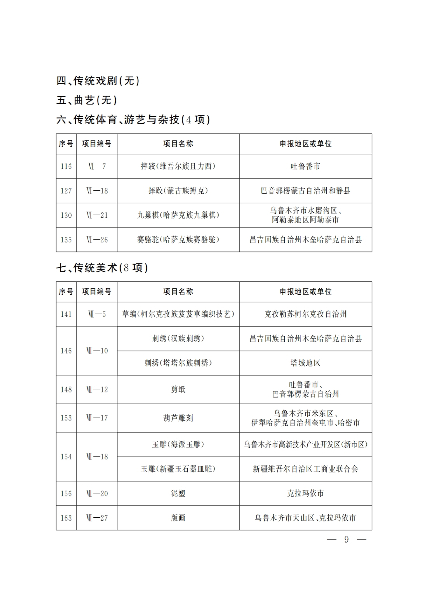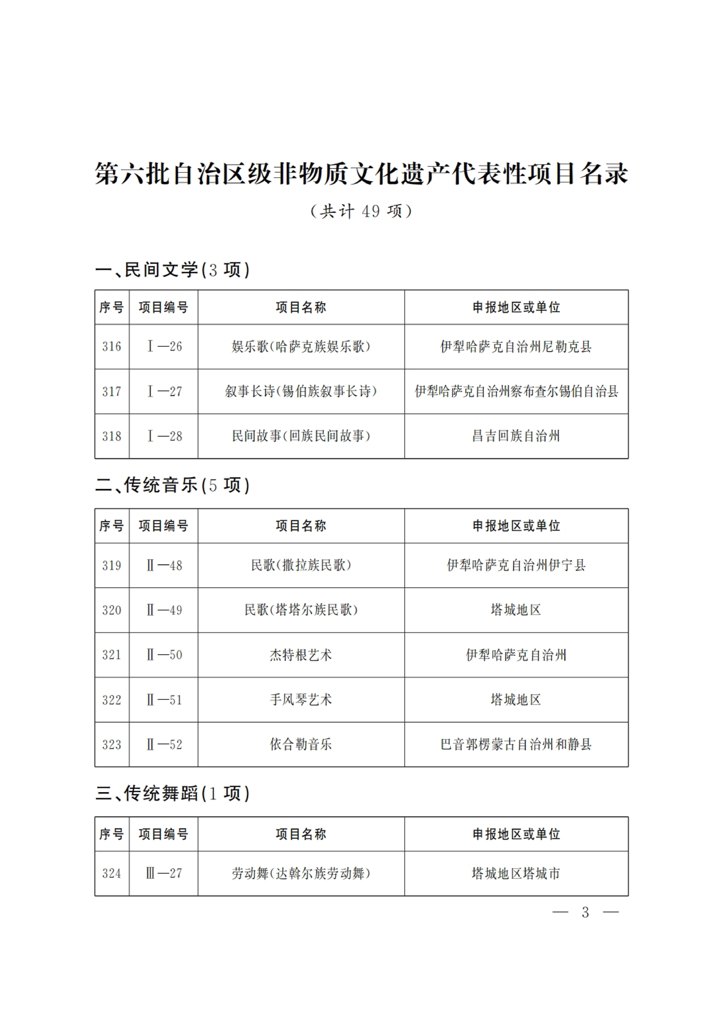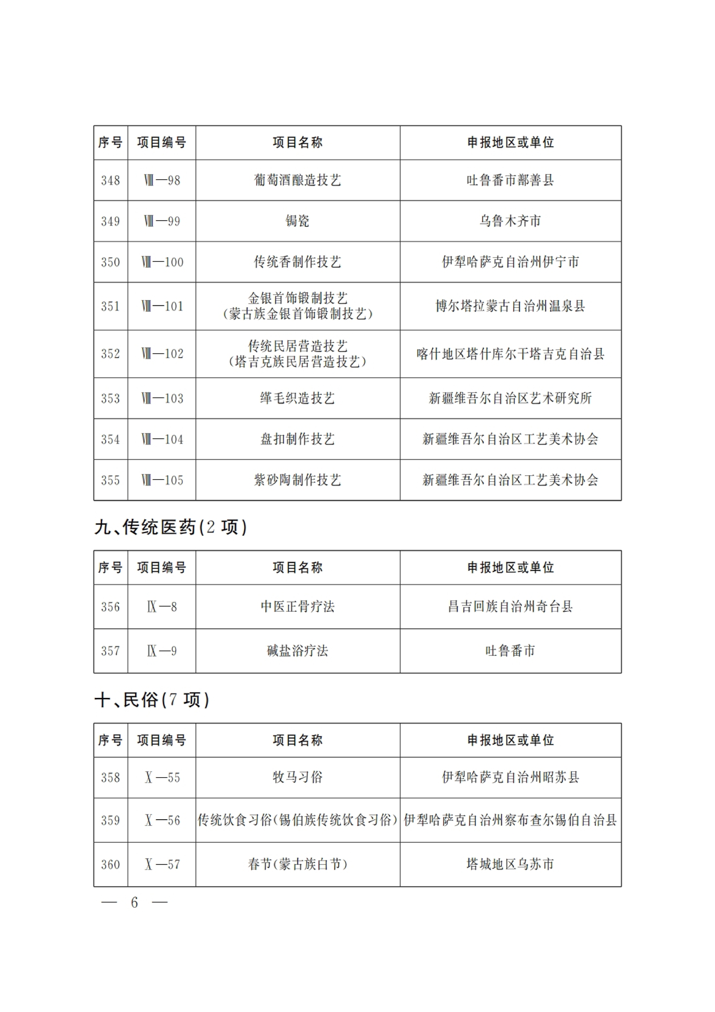 新疆维吾尔自治区 第六批 自治区级 非物质文化遗产代表性项目 名录