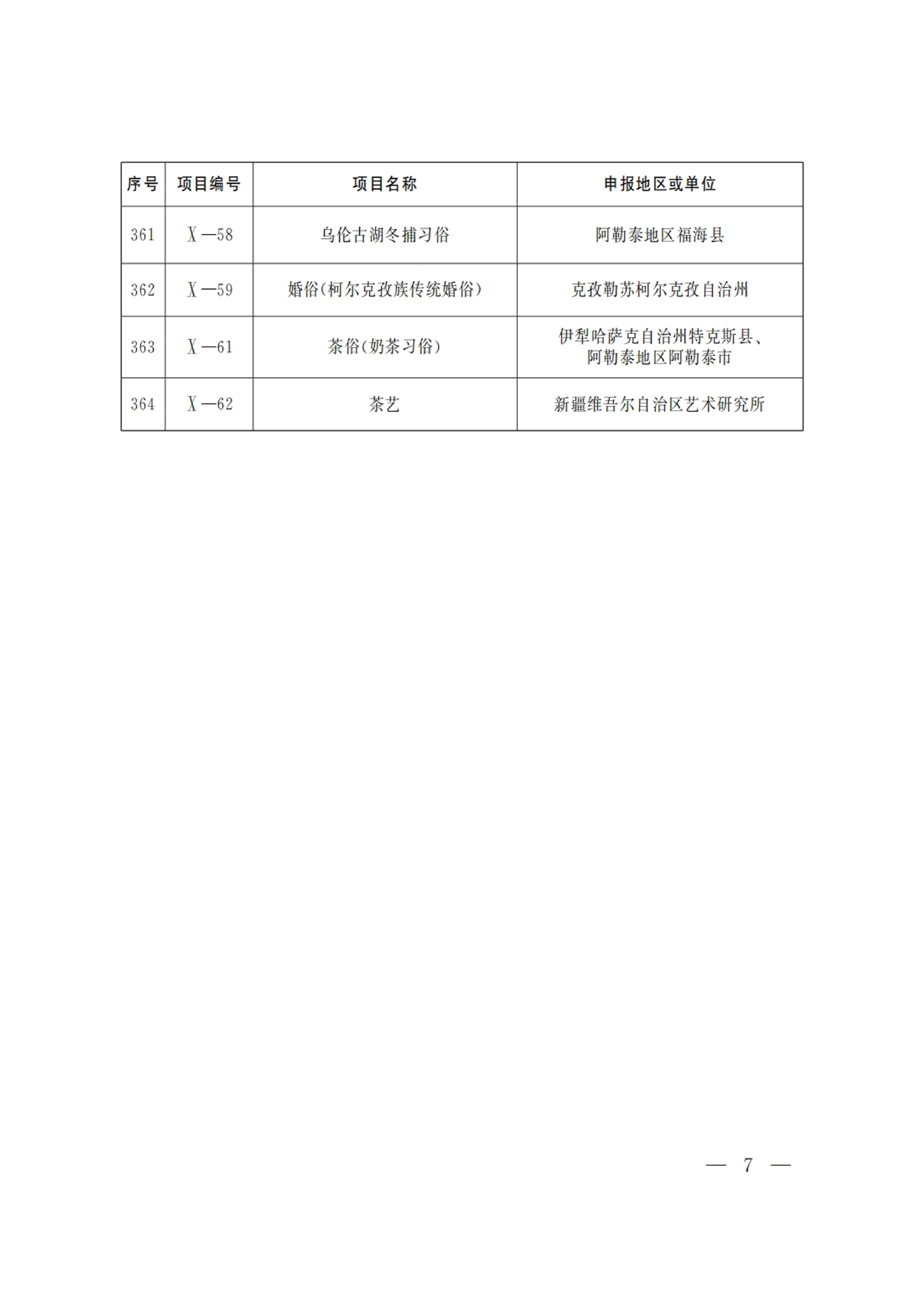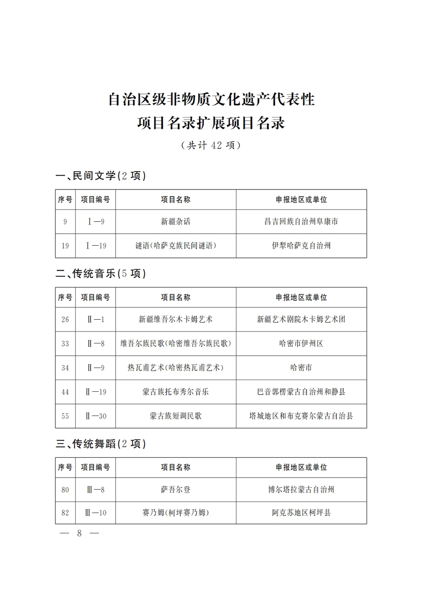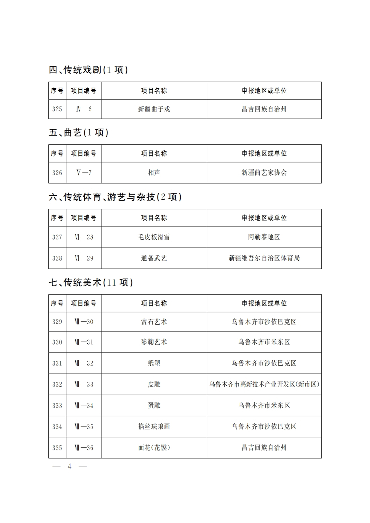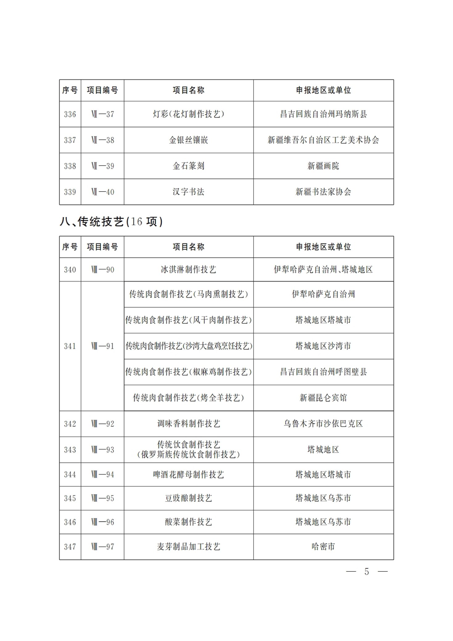 新疆维吾尔自治区 第六批 自治区级 非物质文化遗产代表性项目 名录