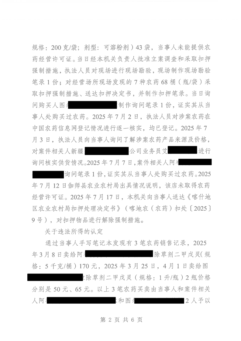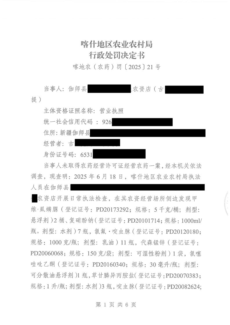伽师县xxxx农资店未取得农药经营许可证经营农药案