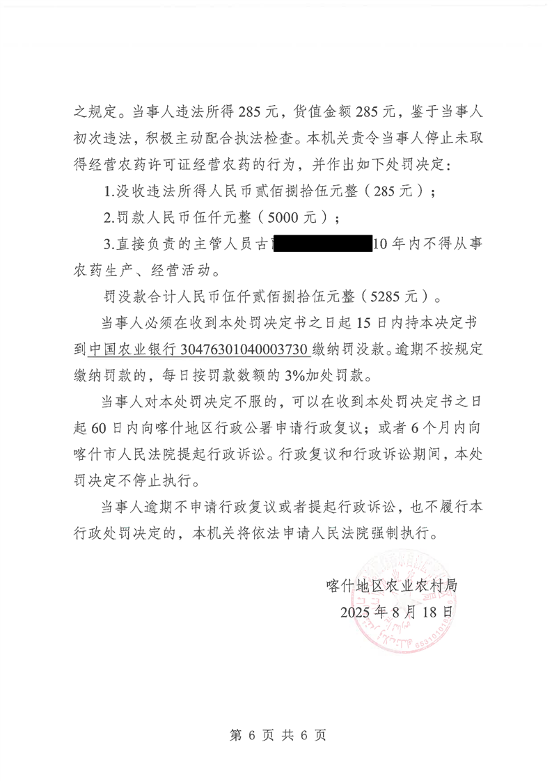 处罚依据和种类:违反了《农药管理条例》第二十四条第一款之规定。依据《农药管理条例》第五十五条第一款第一项和第六十三条第一款,予以处罚。