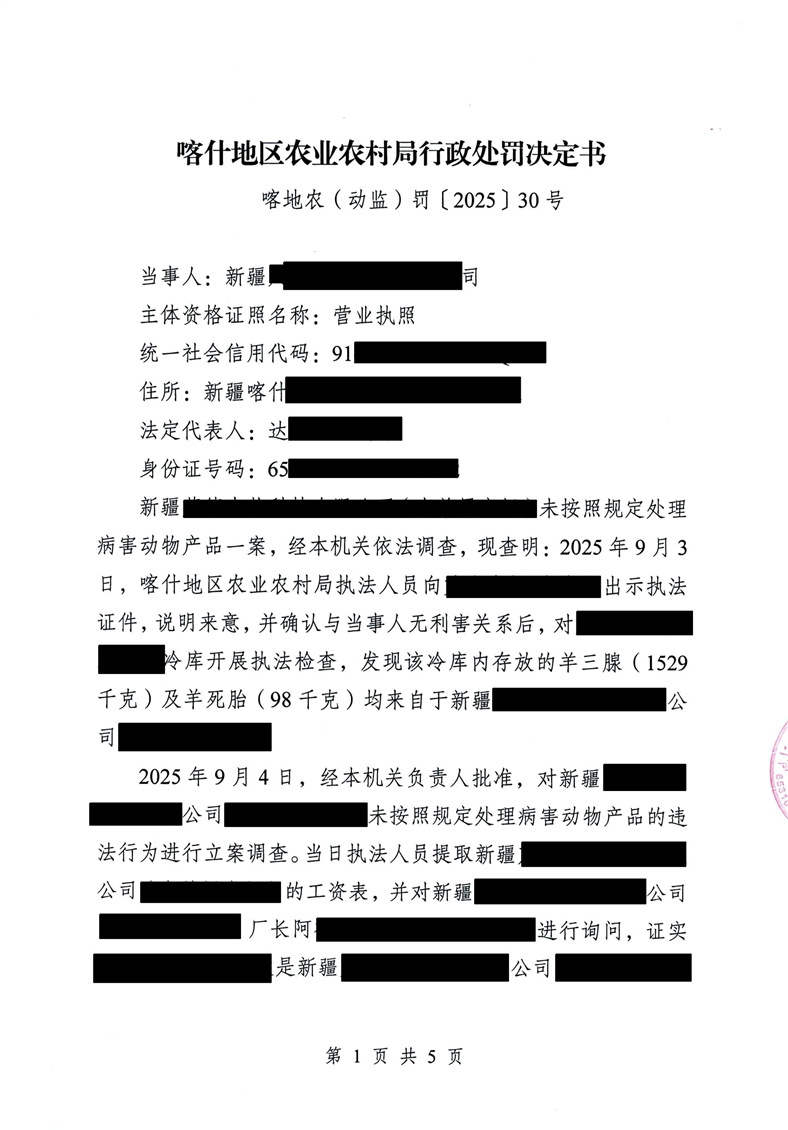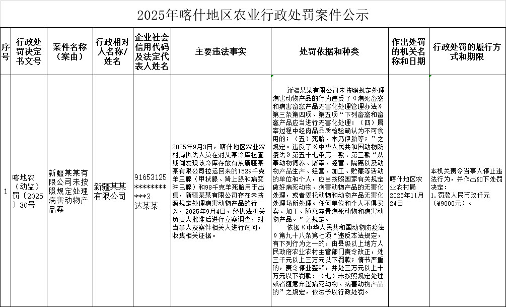 喀地农(动监)罚〔2025〕30号