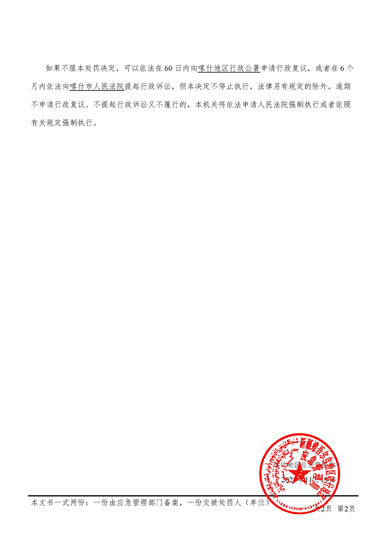 (喀)应急罚〔2025〕3号